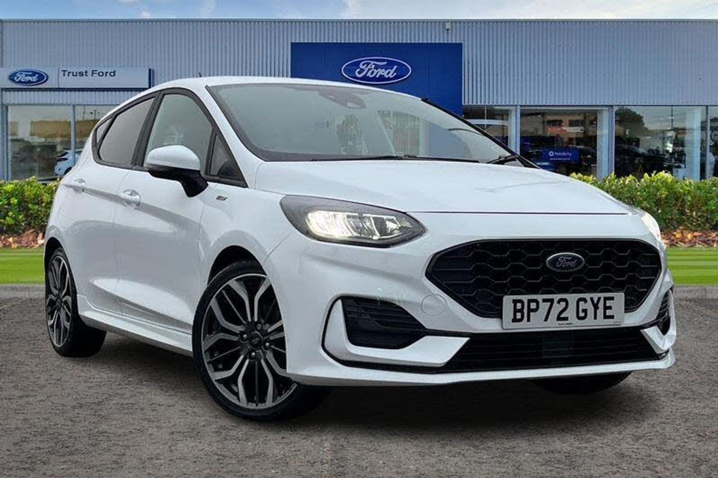 Driver alert system, Electric power steering, Ford easy fuel, Lane keep assist, Lane keeping aid, Rear parking distance sensors, Rear view camera, Selectable drive modes (Normal, Sport, Track), Trip computer, 3rd brake light, Auto high beam, Automatic headlights, Body colour bumpers, Body colour large rear spoiler, Body coloured electrically operated with side indicators, Electric front windows/one touch facility, Electric rear windows, LED rear lights, Quickclear heated windscreen, Rain sensing wipers and auto dimming rear view mirror, Rear privacy glass, Rear side wing doors, Rear wiper, Unique ST-Line grille, full bodystyling kit and large body coloured rear spoiler, 3 rear headrests, 3 seat bench in 2nd row, 4 way manually adjustable passenger seat, Adjustable head restraints, Black headlining, Centre console with opening armrest, 2x cupholders, 12v and USB, EATC - Electronic Auto Temperature control, Leather gear knob, Manual 4-way driver seat adjust, Premium floor mats, Sensico partial premium leather upholstery with red stitching, Sensico wrapped steering wheel, Single front passenger seat, 3 point seatbelts on all rear seats, Electronic stability control with hill start assist, Front and rear seat belt warning, Manual child lock in rear doors, Tyre pressure monitoring system