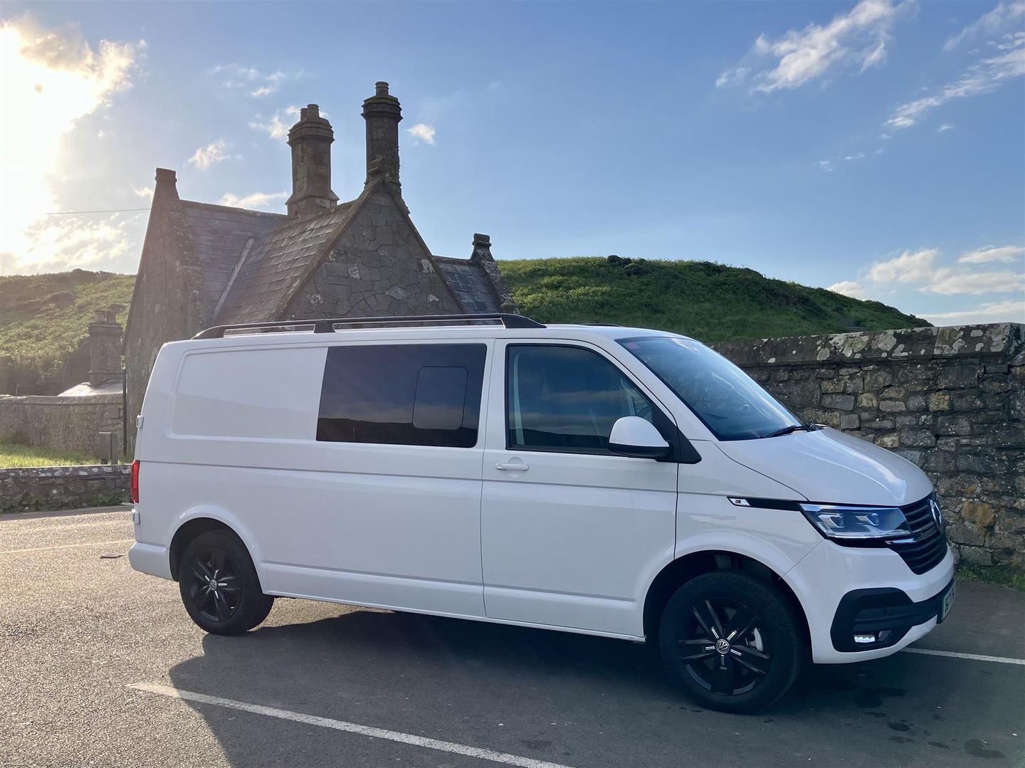 Seat covers fitted from new and with VW roof rails. This vehicle is literally just like brand new and has never been used as a van! 2nd row seats have never been sat in! You won’t find a more perfect example.