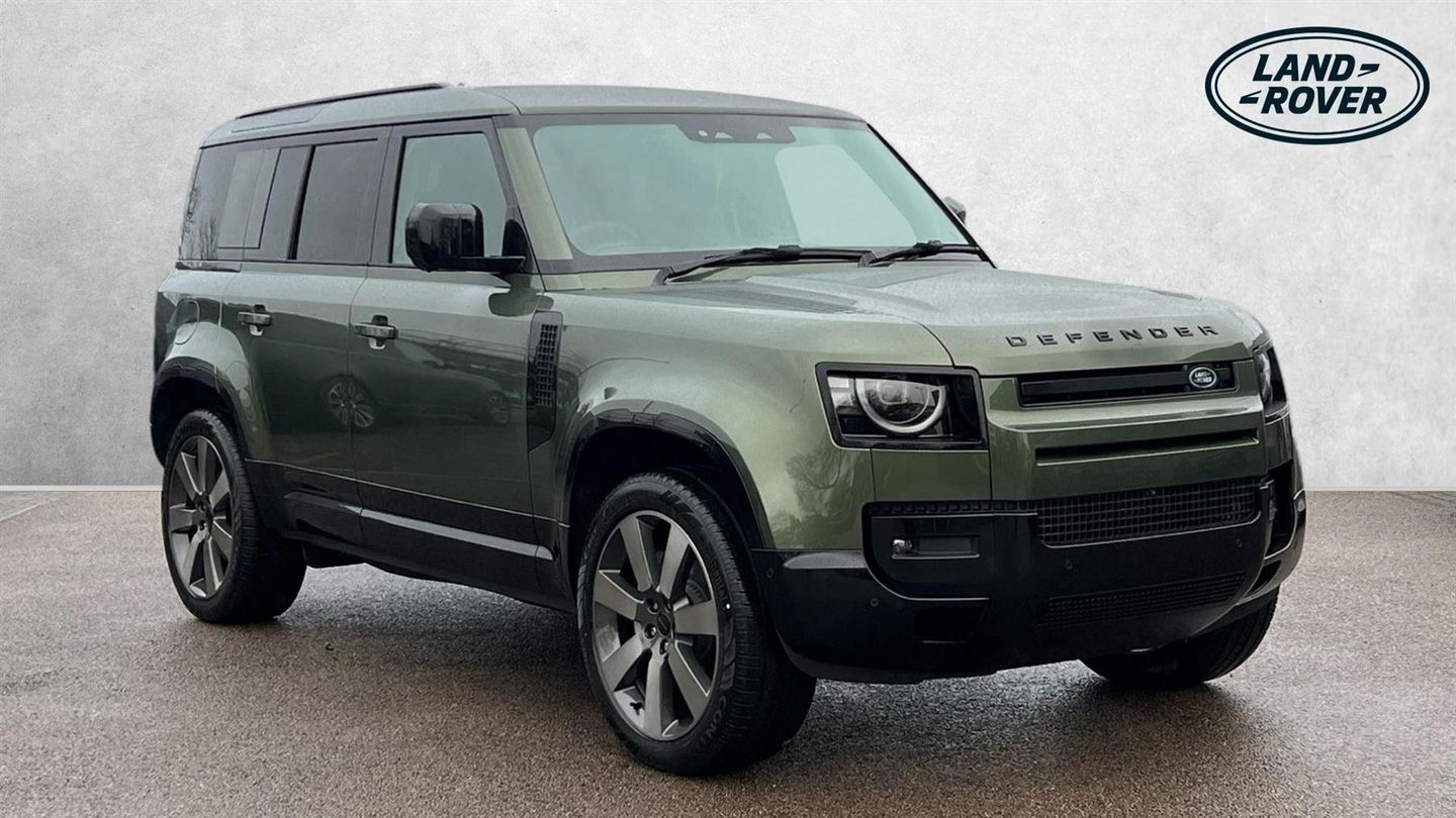 This stunning Defender 110 is presented in the new-for-2026-model-year Woolstone Green, matched with 22-inch Diamond Turned Wheels and the Extended Black Exterior Pack. Our Defender 110 X-Dynamic HSE is finished in Woolstone Green matched with the Extended Black Exterior Pack and 22-inch Style 7030 wheels in Diamond Turned finish, over Ebony Windsor leather interior, and comes equipped with a great range of fantastic features and optional extras, including, 14-way Heated and Cooled front seats with Memory function, Two-zone Climate Control, Meridian Surround Sound System, Privacy Glass, Sliding Panoramic Roof, Matrix LED Headlights, Keyless Entry, Adaptive Cruise Control, Lane Keep Assist Blind Spot Assist, 360-degree Parking Aids, 3D Surround Camera, Apple CarPlay and Android Auto, DAB Radio, Wireless Device Charging, Air Suspension Pack, and much more. Call today for more information. PRICE INCLUDES 5,000 GBP DEPOSIT CONTRIBUTION WHEN FUNDED WITH JLR FS..