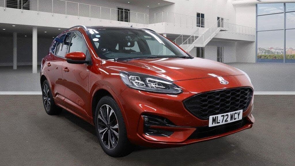 10-Way Power Adjustable Drivers Seat, 12V Power Point in Floor Console, 12v Power Point in Cargo Area, 12v Socket - Voltage Regulator, 19in Alloy Wheels - 5x2 Spoke - High Gloss - Machined, 2nd Row Sliding Seats, 8-Way Manual Passenger Seat including Lumbar Support and Height Adjust, ABS - Anti-Lock Braking System with Enhanced Electronic Stability Control - ESC with Traction Control - Emergency Brake Assist - EBA - Hill Start Assist - Trailer Sway Control, Acoustic Vehicle Alert System - AVAS, Air Conditioning - Electronic Automatic Temperature Control - EATC, Airbag - Driver and Front Passenger Side, Airbag - Front Passenger Deactivation Switch, Airbags - Driver and Front Passenger, Airbags - Front and Rear Side Curtain, Aluminium - Finish Front Scuff Plates with ST-Line Script, Aluminium Foot Pedals - ST-Line Design, Ambient Lighting, Auto Dimming Rear View Mirror, Auto Wipers, Automatic Door Relocking, Automatic Headlights with Auto High-Low Beam, Black Roof Rails, Centre Console with Electronic Parking Brake, Cruise Control with Intelligent Speed Limiter, Driver and Passengers Sun Visor with Illumination, Dual Exhaust Tailpipes with Unique Brushed Stainless Steel Finish, EPAS - Electric Power Assisted Steering, Electric Childproof Locks on Rear Doors, Electric Parking Brake with Auto Hold, Electrical Charging Point in Second Row, Engine Immobiliser - SecuriLock, Exterior Door Handles - Body Coloured, Ford Easy Fuel System, Ford Keyfree System - Keyless Entry with Ford Power Starter Button, Ford SYNC3 DAB Navigation System, Front Lower Grille - Ebony Black Mesh, Front Seats - 2-Way Manual Height Adjust Passive Head Restraints, Front Seats - Drivers and Passengers Seatback Map Pockets, Front Upper Grille - Carbon Black Honeycombe Mesh and High-Gloss Black Surround, Front Windows - Laminated Glass, Front and Rear Bumper - Sporty Body Colour with Rear Ebony High-Gloss Insert, Front and Rear Floor Mats with Red Stitching, Front and Rear Parking Sensors, Full Digital 12.3in Instrument Cluster, Full LED Headlamps, GEO Awareness - Providing Details of ULEZ Within the Satellite Navigation, Gearshift - Automatic - Electronic Rotary Gearshift Dial, Glovebox Lights, Handsfree Power Tailgate, Headlights - Automatic Follow Me Home Lighting, Headlights - Levelling System - Manual, Headlights - Unique Bending, Headliner - Sports Dark, Heated Driver and Passenger Seats, Heated Rear Seats, Heated Steering Wheel, Heated and Power Folding Door Mirrors with Puddle Lights, High-Mounted Brake Light, Kuga Badge, LED Daytime Running Lights, LED Fog Lights - Front, Lane Keeping Aid with Lane Departure Warning, Large Rear Spoiler, Load Compartment - Lights, Load Compartment - Tie Down Hooks, Load Compartment Carpet, Locking Wheel Nuts, Lower Bodyside Moulding - Body Colour, Lower Door Frame Beltline - Black, Mini Overhead Console with Sunglasses Holder Bin, MyKey, Power Door Deadlocks - Double Locking, Power Door Locks, Power Opening Panoramic Roof, Pre-Collision Assist with Autonomous Emergency Braking - Camera Detection, Privacy Glass, Quickclear Heated Windscreen, Rear Duct on B-Pillar, Rear Lights - LED, Rear Seat - 60-40 Split Folding Seats, Rear Seat Centre Head Restraint, Rear Seats - 2-Way Head Restraint Up-Down, Rear Seats - Folding Centre Armrest with Integrated Cup Holder, Rear Seats - Sliding Seat Adjust Tracks - Fore-Aft, Rear View Camera, Red Brake Calipers, Remote Tailgate Release, Removable Package Tray, Rocker Panel Mouldings - Body Colour - ST-Line Design, ST-Line Badge on Left and Right Side Wings, ST-Line Bodystyling Kit, ST-Line Front and Rear Bumper Moulding - Body Colour, Seat Belt - Drivers - Front Passenger and Rear Seat Belt Reminder Alert, Seat Belts - Front 3-Point Seatbelts with Load Limiter, Seat Belts - Front Height Adjustable, Seat Belts - Rear Retractable Rear Belt - 3-Point All Positions, Seats - ISOFIX Mounting Provision for Child Seats - Outer Seats Only, Selectable Drive Modes, Single Rear Fog Light, Sports Seat
