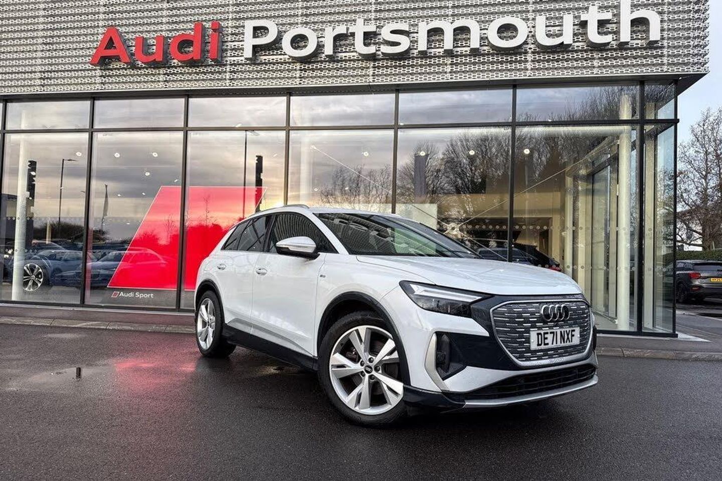 SATELLITE NAVIGATION, AUDI SPORT PACK, AMBIENT LIGHTING PACK, FRONT SPORT SEATS, SPORT SUSPENSION, MULTI FUNCTION STEERING WHEEL, HILL HOLD ASSIST, CRUISE CONTROL, AUDI VIRTUAL COCKPIT, LANE DEPARTURE WARNING, APPLE CARPLAY, ANDROID AUTO, DAB RADIO, TINTED WINDOWS - PRIVACY GLASS, FRONT AND REAR PARKING SENSORS, SPLIT FOLDING REAR SEATS, LIGHT & RAIN SENSOR, AUTO DIMMING REAR VIEW MIRROR, SELECTABLE DRIVING MODES, PUSH BUTTON START, GLACIER WHITE METALLIC WITH LEATHER/CLOTH UPHOLSTERY, 20'' 5 Y SPOKE ALLOY WHEELS, DUAL ZONE CLIMATE CONTROL, HEATED FRONT SEATS WITH LUMBAR SUPPORT, LED HEADLIGHTS WITH DYNAMIC REAR INDICATORS, VOICE ACTIVATED CONTROLS AND MUCH MORE.All Audi Approved used cars are offered with a 12-month warranty and roadside assistance.Portsmouth Audi are delighted to offer this Audi Q4 in Glacier white over Fabric/ Leather and has completed just 49510 miles., We are proud to be part of the Harwoods group, a family run business established in 1931. With four Approved Audi retailers within our group, we have access to over 400 vehicles. If this isn't the right car for you, please contact us and we will find it. Our group stock has spec to include Sunroof, Leather, Heated Seats, Apple Car Play, Heated Steering Wheel, Reverse Camera, Rear Entertainment, Towbar, 360-degree camera, Comfort & Sound Pack, Tech Pack, Panoramic Sun Roof, Tow Bar, Black Pack, Air Suspension, Apple Carplay, Adaptive Cruise, Massage Seats, Refrigerator, AWD, Technology Pack, Head up Display, Vorsprung, Technik, Black Edition, S-Line, S Line, Edition 1, TFSI, Quattro, Sportback, LWB. Other colour options including Black, Blue, Green, Silver, White, Red, Grey, Yellow, Orange. Interior options of Ebony, Black, Ivory, White, Tan, Cream, Oyster, & Euro 6 ULEZ compliant drive trains.-SAT NAV , VIRTUAL COCKPIT-Video Presentation available on Request