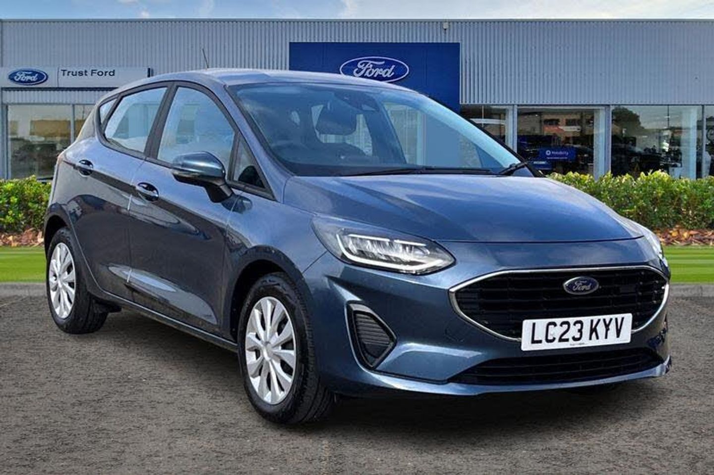 4.2 TFT Ice blue illumination analogue cluster, Cruise control with adjustable speed limiter, Electric power steering, Ford easy fuel, Ford SYNC 2.5 with DAB radio, 8 screen, emergency assistance, Apple car play/Android auto, 2x USB, 6 speakers, Lane keep assist, Lane keeping aid, Selectable drive modes (Normal, Sport, Track), Trip computer, 3rd brake light, Automatic headlights, Body colour bumpers, Body coloured electrically operated with side indicators, Electric front windows/one touch facility, High gloss chrome grille surround, LED headlights with LED daytime running light and integrated fog light, Quickclear heated windscreen, Rain sensing wipers and auto dimming rear view mirror, Rear side wing doors, Rear wiper, 3 rear headrests, 3 seat bench in 2nd row, Adjustable head restraints, Cloth upholstery with metal grey stitching, Front floor mats in velour, Manual 2 way passenger seat adjust, Manual 4-way driver seat adjust, Manual air conditioning, Single front passenger seat, 3 point seatbelts on all rear seats, Electronic stability control with hill start assist, Front and rear seat belt warning, Manual child lock in rear doors, Tyre pressure monitoring system