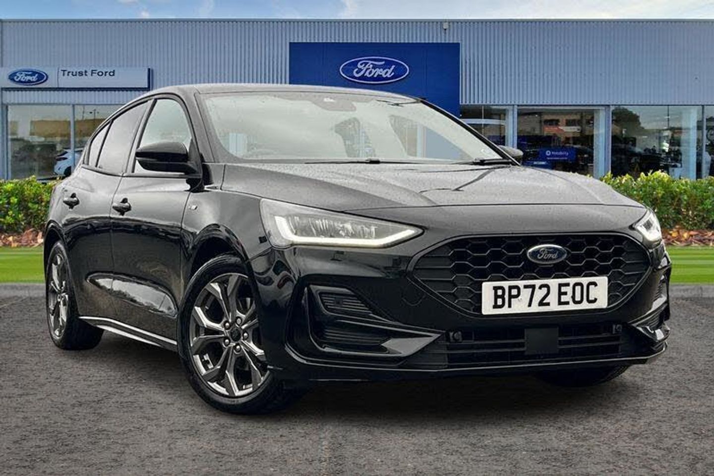 4.2 Colour TFT Ice blue illumination analogue cluster with trip computer, Bluetooth system, Digital clock, Easy fuel capless refuelling system, Eco mode, Ford SYNC 4 Navigation with 13.2'' touchscreen, DAB radio, Emergency Assistance, Apple Carplay & Android Auto, 6 speakers & FordPass Connect, Lane keeping system - lane keeping alert and lane keeping aid, PAS, Rev counter, Selectable drive mode, Service interval indicator, Auto headlamps (on/off), Body coloured door handles, Electrically operated front and rear windows with one touch opening and closing, Electrically operated heated power fold door mirrors with puddle lamp with side indicators, Front variable intermittent wipers with electric wash, Full fixed LED headlamps, Heated rear window, LED daytime running lamp, LED rear lamps, LED third brake light, Polished twin tailpipe, Privacy glass, Quickclear heated windscreen, Rain sensor, Rear side wing doors, Tailgate wash/wipe, Unique ST-Line grille, full bodystyling kit, and large body coloured rear spoiler, 3 rear headrests, 3 seat bench in 2nd row, Cloth upholstery, Dual zone electronic air temperature control, Height adjustable front headrests, Isofix child seat preparation, Reach + rake adjustable steering column, Single front passenger seat, 3x3 point rear seatbelts, ABS+Electronic Brake force Distribution, Auto hold function, Driver airbag, EDL traction control, Electronic parking brake, Electronic stability control, Front and rear seatbelt reminder, Front inertia reel height adjustable seatbelts with pre-tensioners, Front passenger airbag, Front side airbags, Passenger airbag deactivate switch, Post collision braking, Pre collision assist with autonomous emergency braking and pedestrian/cyclist detection, Remote/power child rear door locks, Side curtain airbags, Three rear inertia reel lap/diagonal seatbelts, Tyre pressure monitoring system