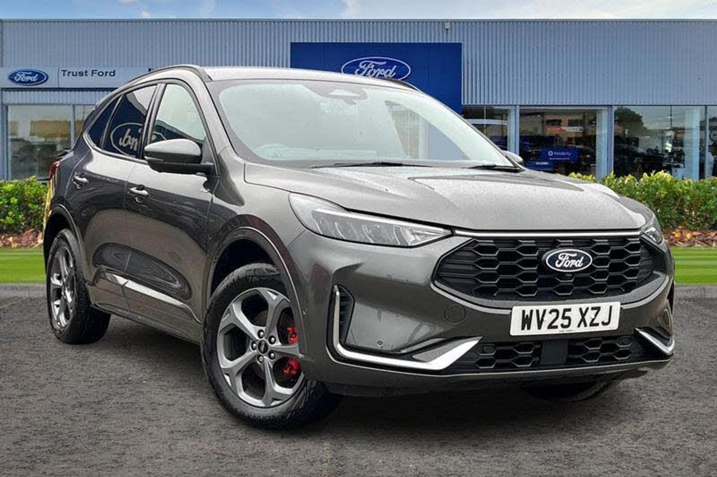12.3 digital colour instrument cluster, 360 degree view camera, Clear exit assist, Cross traffic alert with active braking, e-Call (emergency call), Ford easy fuel, Ford SYNC 4 Navigation with 13 touchscreen, DAB radio, emergency assistance, Andriod Auto/Apple CarPlay, 5G modem & Ford Pass connect, Front and rear parking sensors, Hands free power tailgate, Lane centering assist, Lane keeping aid with lane departure warning, Power assist steering, Selectable drive modes, Service interval indicator, Auto headlamps with high and low beam, Black roof rails, Body colour bumpers, Front LED fog lamps, Large rear spoiler, LED daytime running lights, LED rear lights, LED third brake light, Pop out door edge protectors, Power front/rear windows with global close, Power heated folding door mirrors with puddle lights, memory function and camera, Quickclear heated windscreen, Rain sensing wipers, Rear privacy glass, Rear side wing doors, Rear wiper, ST-Line body styling kit, 2nd row sliding seats, Electronic automatic temperature control (EATC), Front and rear head restraints, Partial premium touch sensico upholstery, Rear centre head restraint, Single front passenger seat, Sports seats, 3x3 point rear seatbelts, Airbags - front driver/passenger, front and rear curtain, Drivers knee airbag, Dynamic brake support, Electronic stability control (ESC) and ABS, Evasive steering assist, Ford MyKey Gen 2 safety system, Manual child proof rear door locks, Pre collision assist with autonomous emergency braking, Rear seat Occupancy alert, Red brake calipers, Tyre pressure monitoring system