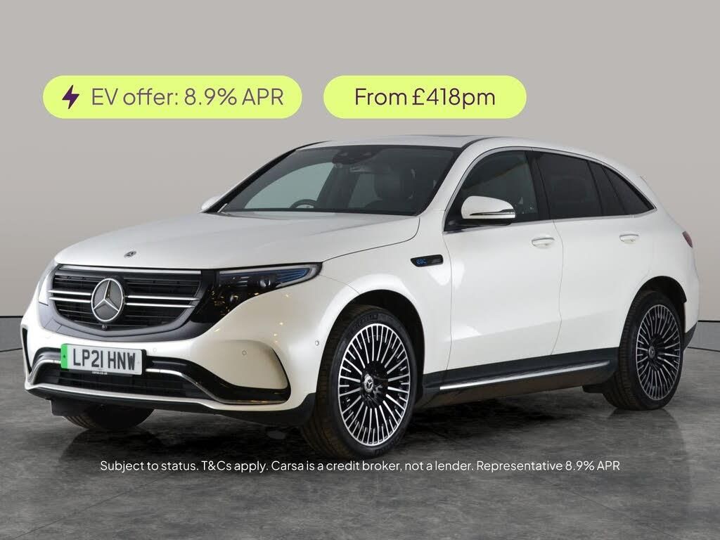 Experience luxury and innovation with this stunning white Mercedes-Benz EQC SUV. Enjoy the open skies through the sunroof and immerse yourself in music with the premium Burmester sound system. Comfort comes first with heated leather seats and the Comfort Pack, while the advanced tech includes Apple CarPlay, sat nav, and WiFi. Stay safe with Active Lane Assist, Blind Spot Assist, LED headlights, and a reversing camera. Keyless entry and the Mirror Package add convenience to every journey. The perfect electric SUV for stylish, effortless driving. 1 service recorded, last serviced on 29/01/2026 at 32,050 miles. MOT to 05/02/2027. Visit our website for service history, online valuation, full vehicle specification plus multiple images. This vehicle is VAT qualifying. Any feature/option specified here is from 3rd party data. We cannot guarantee the accuracy of any specification supplied by a 3rd party. We recommend that you physically check the specification of the vehicle on site prior to purchase. This information does not form part of the buying contract. Terms & Conditions apply. We have over 2,000 cars available from our 10 national branches, check our website to see all our stock. Our Trustpilot rating is 4.4/5 with over 9,000 reviews.