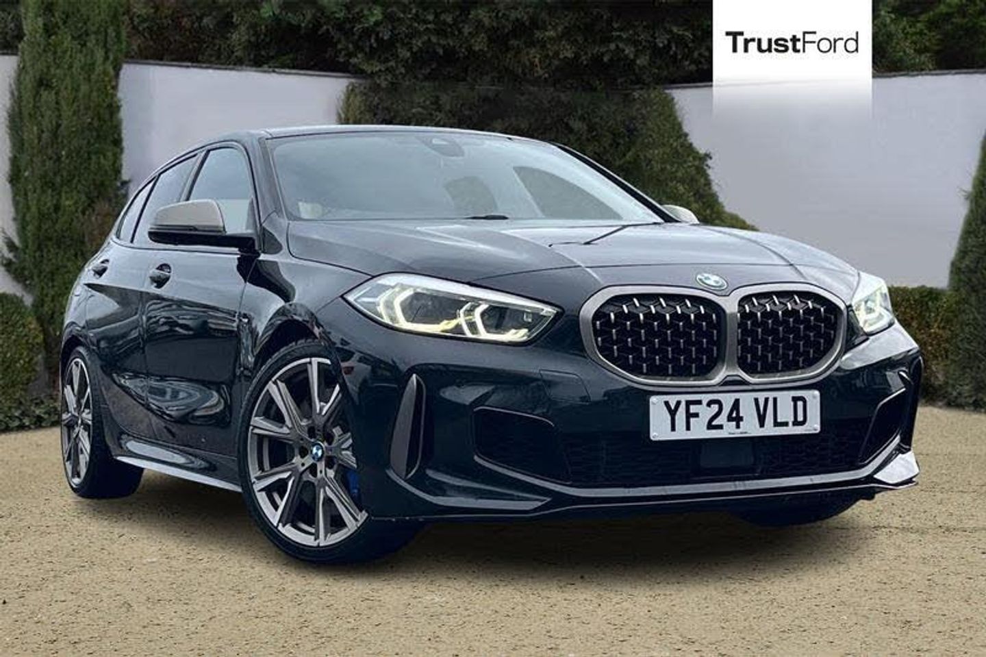 Active guard plus, Attentiveness assist, BMW ConnectedDrive online services, BMW Teleservices, Check Control warning system for monitoring of lights and door/luggage compartment open warning, Cruise control with speed limiter, Eco pro mode, Electric power steering, Electro hydraulically controlled multi-plate clutch transfers drive to rear axle and with power take-off device located on the front differential., Energy efficient operating strategy, Front axle single joint with specific axle kinematics to minimise drive influences on steering + provide increased rigidity agile driving behaviour, Gearshift time display in manual mode, Integrated owners handbook, Lane departure warning system, M Sports steering with M135i xDrive specific settings, Oil sensor for level and grade, On board computer, Optimum shift indicator, Personal Profile, Pull away assistant, Rigidly mounted rear subframe - Multi link construction with separate spring / damper configuration and excellent driving characteristics, Speed limit Info including no-overtaking indicator, Sporty fast gear shifting in sport mode, Auto dimming rear view mirror, Automatic headlight beam throw control, Automatic windscreen wipers and automatic headlight, Body colour door handles, Body colour roof trims, Cerium grey exterior mirror caps, Direction indicator side lights in exterior mirrors, Electrically adjustable exterior mirror with mirror adjustment switch on drivers armrest and aspheric on driver side, convex on passenger side, Exhaust tailpipe, Cerium Grey with bevelled finish - twin, round 100mm, left and right split, Fading support, Folding side mirrors with auto dimming/folding wing mirrors with auto dimming, Follow me home headlights, Front and rear bumper system with replaceable deformation elements, Front and rear electric windows with open and close fingertip control, anti trap facility and comfort closing, Front door sill finishers with M135i designation, Green tinted heat protection glazing, High gloss shadowline window frame, Recess cover mirror frames and B/C pillar embelisher trim, High level third brake light, Integrated front windscreen with washer jets, Kidney grille frame in Cerium Grey with Mesh design, LED daytime running lights, LED eyebrow turn indicators, Lightweight engineering, M logo designation side in cerium grey, M Performance exhaust system with valve control and minimised exhaust back pressure, M Performance specific setup, M Sport spoiler, Matt black air guide grilles, Matt black wheel arch trim, Model designation on electric bootlid includes xDrive designation for M135i xDrive, Nearside reverse light in rear light cluster, Preparation for high beam assistant, Rear fog lights, Rear side wing doors, Rear window wiper, Reinforced crank drive, new pistons and adapted con rods, Shark fin antenna, Trailer stabilisation logic, Visible VIN plate, Welcome lighting, 12V power socket in front centre console with blanking plug, 3 rear seat head restraints, 3 seat bench in 2nd row, 3 spoke sports leather steering wheel with black leather and stitching, pearl chrome decorative finish, specific M Badge, Anthracite headlining, Black boot net with lashing eyes, Cargo function on 2nd seat row, Child seat ISOFIX attachment for two outer rear seats and front passenger seat with anchorage points, Conditioned based service, Driver and front passenger backrest net on rear, Driver and front passenger seat heating, Driver side folding compartment in instrument panel, Folding rear clothes hook, Four grab handles integrated in roof lining, Front and rear door pockets with bottle holders, Front and rear side armrest integrated into door trim, Front armrest, Front M sports seats, Glove compartment, Height adjustable front head restraints, Luggage compartment for bag hooks on left and right, foldable luggage compartment liner and four lashing eyelets, Manual adjust steering wheel, Multi-function controls for steering wheel, Single front passenger seat, Storage co