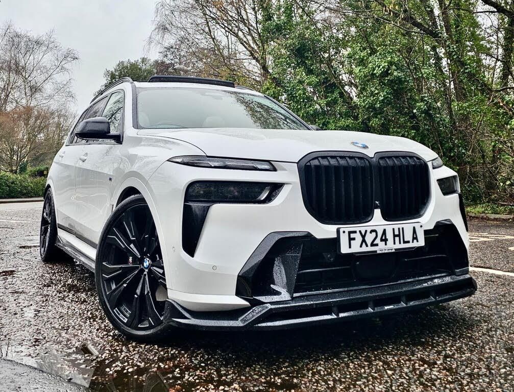 ** VIEWING VIA APPOINTMENT ONLY ** 07802 365 859 . MEGA SPEC . 1 OWNER . BMW WARRANTY . FULL BMW SERVICE HISTORY . 2 KEYS . M SPORT PRO PACK . SKY LOUNGE PANORAMIC GLASS SUNROOF . TECHNOLOGY PACKAGE . FRONT MASSAGE SEATS . 360 CAMERAS . HEADS UP DISPLY . BOWERS & WILKINS DIAMOND SURROUND SOUND SYSTEM . BMW CRYSTAL ICONIC HEADLIGHT GLOW . HEATED STEERING WHEEL . CLIMATE FRONT SEATS . HEATED REAR SEATS . SOFT CLOSE DOORS . AMBIENT LIGHTING . GESTURE CONTROL . APPLE CARPLAY . FACTORY ADJUSTABLE AIR SUSPENSION . 23 ALLOY WHEELS . M PERFORMANCE BODYKIT . PRIVACY GLASS . REAR BLINDS . ADAPTIVE CRUISE CONTROL . AUTO STEERING LANE KEEP . LIVE TV . DVD . BLUETOOTH . DAB . CRYPTO PAYMENTS WELCOMEThis 2024 BMW X7 40d M Sport is a superb example, having had only one owner since new. This impressive seven seat SUV boasts a powerful 3.0L Diesel Hybrid engine paired with Four Wheel Drive for confident handling in all conditions. As a Euro 6 compliant vehicle, it meets stringent emission standards. The M Sport trim level, enhanced by the Ultimate Package, includes desirable features such as adaptive cruise control, a panoramic opening sunroof, front camera parking assistance, a premium branded sound system, and heated seats for ultimate comfort. Further elevating its presence are the striking Iconic Glow Crystal LED headlights and the exclusive M Carbon side mirror caps, all complemented by eye catching 23 inch Individual V Spoke Bicolour alloy wheels.Experience exhilarating performance with this X7, capable of accelerating from 0 to 62mph in a swift 5.9 seconds, a testament to its dynamic capabilities. The inclusion of the Skylounge Pack adds a touch of luxury, while the substantial towing weight of 2200 kg ensures practicality for a variety of needs. These carefully selected features and impressive performance figures demonstrate how this BMW X7 40d M Sport stands out from other vehicles in its class, offering a refined and capable driving experience.-MEGA SPEC . SKY LOUNGE-FINANCE PART EXCHANGE WARRANTY