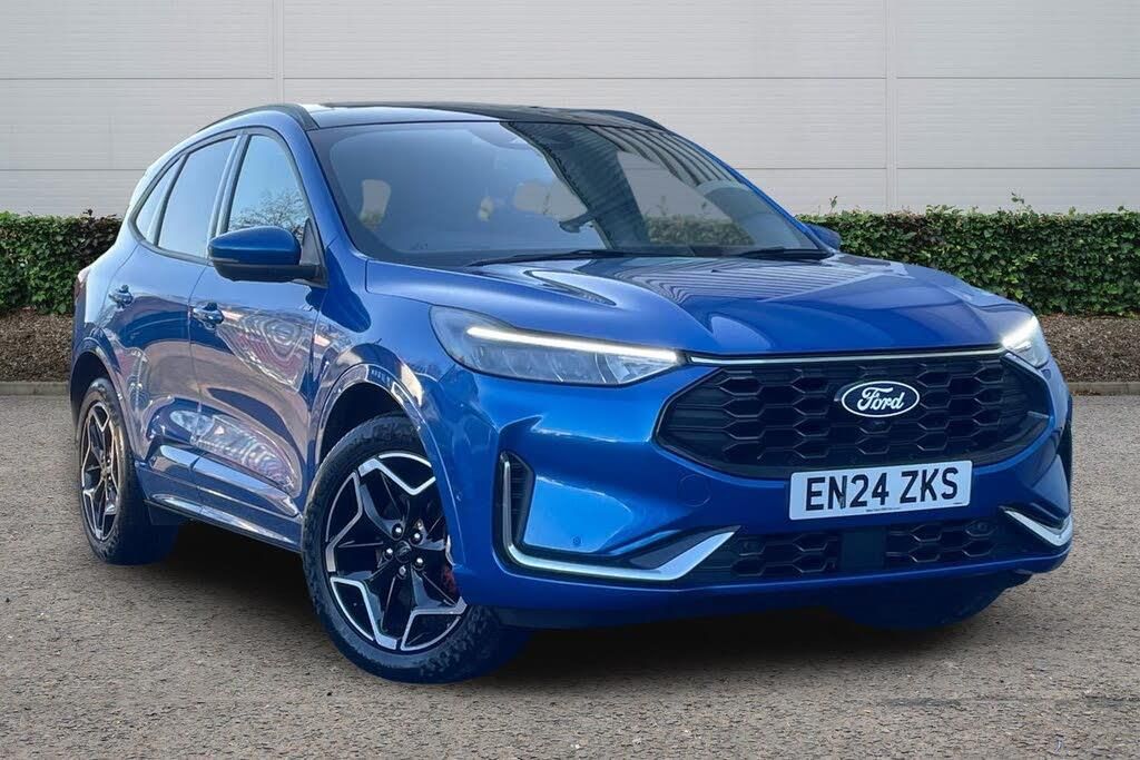 12-Way Ergonomic Power Adjust Driver's and Passenger's Seat, 12V Power Point in Floor Console, 12v Power Point in Cargo Area, 12v Socket - Voltage Regulator, 19in Alloy Wheels - ST-Line- Ebony Black - Machined Finish, 2nd Row Sliding Seats, 360 Degree Camera, ABS - Anti-lock Braking System, Acoustic Vehicle Alert System - AVAS, Adaptive Cruise Control, Air Conditioning - Electronic Automatic Temperature Control - EATC, Airbag - Driver and Front Passenger Side, Airbag - Front Passenger Deactivation Switch, Airbags - Driver and Front Passenger, Airbags - Front and Rear Side Curtain, Aluminium - Finish Front Scuff Plates with ST-Line Script, Aluminium Foot Pedals - ST-Line Design, Ambient Lighting, Auto Dimming Rear View Mirror, Auto Wipers, Automatic Door Relocking, Black Roof Rails, Centre Console with Electronic Parking Brake, Child Locks - Manual on Rear Doors, Cross Traffic Alert, Digital Colour 12.3in Instrument Cluster, Driver Assistance Pack, Driver and Passengers Sun Visor with Illumination, Dual Exhaust Tailpipes with Unique Brushed Stainless Steel Finish, EPAS - Electric Power Assisted Steering, Electric Parking Brake with Auto Hold, Electrical Charging Point in Second Row, Engine Immobiliser - SecuriLock, Enhanced Electronic Stability Control - ESC with Traction Control - Emergency Brake Assist - EBA - Hill Start Assist - HSA and Trailer Sway Control, Exterior Door Handles - Body Coloured, Ford Easy Fuel System, Ford Keyfree System - Keyless Entry with Ford Power Starter Button, Ford SYNC 4 Navigation, Front Seats - 2-Way Manual Height Adjust Passive Head Restraints, Front Seats - Drivers and Passengers Seatback Map Pockets, Front Seats - Sports Style V-shape with High Bolster, Front Windows - Laminated Glass, Front and Rear Bumper - Sporty Body Colour with Rear Ebony High-Gloss Insert, Front and Rear Floor Mats with Red Stitching, Front and Rear Parking Sensors, Full LED Headlamps, Gearshift - Automatic - Electronic Rotary Gearshift Dial, Glovebox Lights, Handsfree Power Tailgate, Headlights - Automatic Follow Me Home Lighting, Headlights - Automatic High Beam Assist, Headlights - Levelling System - Manual, Headlights - Unique Bending, Headliner - Sports Dark, Heated and Power Folding Door Mirrors - Puddle Lights - Memory Function - Camera, High-Mounted Brake Light, Kuga Badge, LED Daytime Running Lights, LED Fog Lights - Front, Lane Keeping Aid with Lane Departure Warning, Large Rear Spoiler, Load Compartment - Lights, Load Compartment - Tie Down Hooks, Load Compartment Carpet, Locking Wheel Nuts, Lower Bodyside Moulding - Body Colour, Lower Door Frame Beltline - Black, Mini Overhead Console with Sunglasses Holder Bin, MyKey, Pop-Out Door Edge Protectors, Power Door Deadlocks - Double Locking, Power Door Locks, Power Opening Panoramic Roof, Pre-Collision Assist with Autonomous Emergency Braking, Quickclear Heated Windscreen, Rear Duct on B-Pillar, Rear Lights - LED, Rear Privacy Glass, Rear Seat - 60-40 Split Folding Seats, Rear Seat Centre Head Restraint, Rear Seats - 2-Way Head Restraint Up-Down, Rear Seats - Folding Centre Armrest with Integrated Cup Holder, Rear Seats - Sliding Seat Adjust Tracks - Fore-Aft, Red Brake Calipers, Remote Tailgate Release, Removable Package Tray, Rocker Panel Mouldings - Body Colour - ST-Line Design, ST-Line Badge on Left and Right Side Wings, ST-Line Bodystyling Kit, ST-Line Front and Rear Bumper Moulding - Body Colour, Seat Belt - Drivers - Front Passenger and Rear Seat Belt Reminder Alert, Seat Belts - Front 3-Point Seatbelts with Load Limiter, Seat Belts - Front Height Adjustable, Seat Belts - Rear Retractable Rear Belt - 3-Point All Positions, Seats - ISOFIX Mounting Provision for Child Seats - Outer Seats Only, Selectable Drive Modes, Single Rear Fog Light, Standard Home Charging Cable - 3-Pin Domestic Socket 230V, Steering Column - Locking Electric, Steering Column - Rake and Reach Adjustment, Steering Wheel - ST-Line Sports-Style Perforated Sensico-Trimmed with Red Stitching, Suspension - Sports, Tailgate Badge - PHEV - Plug-In-Hybrid, Tailgate Handle - Body Colour, Tether Anchorage - Two Rear Seat Top Tether Anchorage Restraints, Thatcham Category 1 Perimeter and Volume Sensing Alarm, Tow Hooks - Front and Rear, Trip Computer, Tyre Inflation Kit, Tyre Pressure Monitoring System, Upper Door Frame Beltline - Black, Windows - Power Front and Rear with Global Closing, Winter Pack, Wiper - Intermittent Rear Window Wiper, Wrong Way Alert, eCall