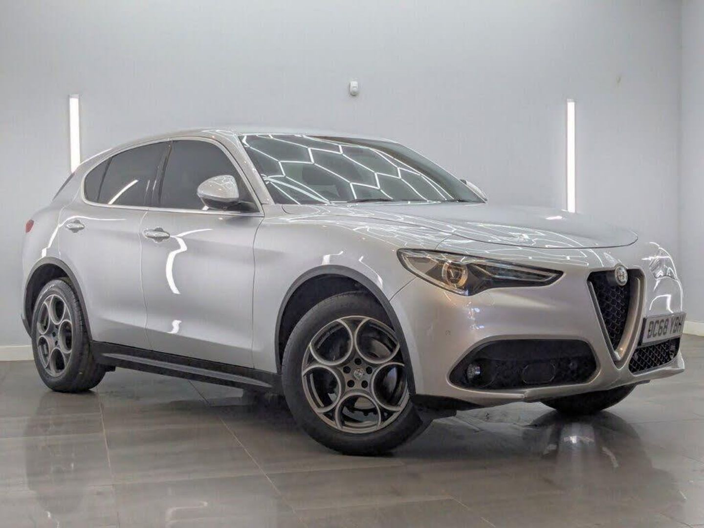 This 2019 Alfa Romeo Stelvio TD Super boasts exceptionally low mileage for its age, having covered just 47,972 miles. This four wheel drive SUV is equipped with a powerful 2.2 litre diesel engine and meets Euro 6 emission standards. The Super trim level includes a Cold Weather Pack, featuring heated seats and a heated steering wheel, perfect for those colder mornings. You'll also find stylish black brake calipers and a rear backup camera for easier parking, all complemented by a sophisticated black leather interior. The vehicle will be supplied with a new inspection and fresh MOT, followed by a 3 months warranty with the option to extend up to 36 months. Experience impressive performance with this Stelvio, capable of accelerating from 0 to 60 miles per hour in a swift 6.6 seconds. Its fuel economy is a notable highlight, achieving up to 59 miles per gallon, which indicates it is more economical than many similar vehicles. Furthermore, its low CO2 emissions are another advantage, suggesting a more environmentally conscious choice. This Alfa Romeo Stelvio also offers a substantial towing weight of 2300 kg, making it a versatile option for various needs. Welcome to Crowther Lodge Motor Company. Based in Gateshead, Tyne and Wear, prestige used vehicle specialist, offering knowledge and over 25 years experience on a wide range of vehicles.