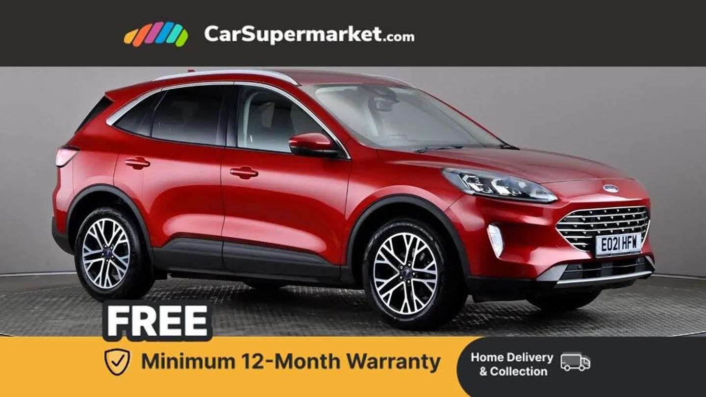 Ford easy fuel,Front and rear parking sensors,Hands free power tailgate,Lane keeping aid with lane departure warning,Mobile phone wireless charging pad,Power assist steering,Rear view camera,Selectable drive modes,Auto dimming rear view mirror,Auto headlamps with high and low beam,Auto wipers,Front LED fog lamps,LED daytime running lights,LED rear lights,Power folding heated door mirrors with puddle lights,Power front/rear windows with global close,Privacy glass,Quickclear heated windscreen,Rear spoiler,Silver roof rails,Twin exhausts,10 way power adjustable drivers seat,2nd row sliding seats with 60:40 split,8 way manual passenger seat including lumbar support and height adjust,Ambient lighting,Centre console with electronic parking brake,Dual electronic automatic temperature control,Front and rear head restraints,Partial premium touch sensico sports seats with ebony cloth inserts,Rear charging point,Salerno partial leather upholstery,B&O with large instrument cluster pack - Kuga,3x3 point rear seatbelts,Airbags - front driver/passenger, front and rear curtain,Drivers knee airbag,Electronic stability control (ESC) and ABS,Ford MyKey Gen 2 safety system,Manual child proof rear door locks,Post collision braking,Pre collision assist with autonomous emergency braking,Rear seat Occupancy alert,Tyre pressure monitoring system,Engine immobiliser,Keyless entry,Keyless start with 'Ford Power' starter button,Locking wheel nuts,Remote powered central double locking doors,Thatcham category 1 alarm,Lucid Red,Salerno Leather - Ray Cloth - Ebony