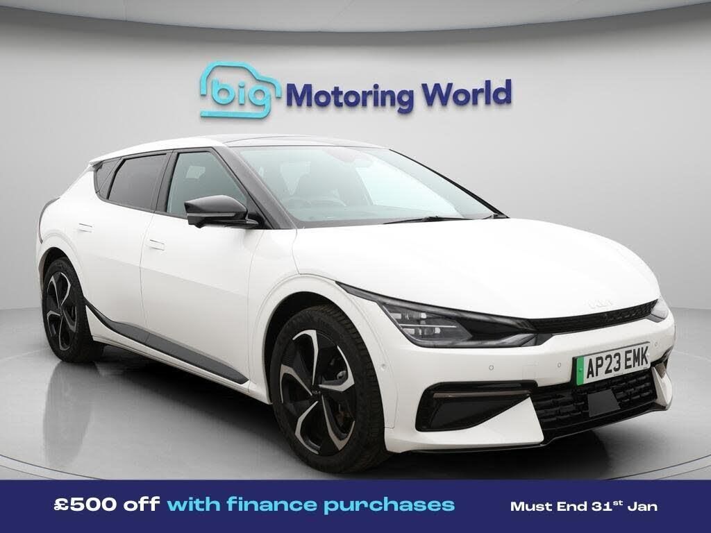 £500 towards your finance depo-Our Kia EV6 comes with optional extras worth £675. Specification includes a range of fantastic features including £500 towards your finance deposit, Panoramic Roof, All Wheel Drive, Head up Display, 20'' Alloy Wheels, Part Leather Seats, Apple CarPlay, Adaptive Cruise Control, Premium Sound System, Meridian Speakers Specification information is supplied by CAPHPI and may vary to the actual car. This data does not form any part of a buying contact. Please check specification prior to purchase in-store. The MOT is valid until January 2027, visit bigmotoringworld.co.uk for more photos, a 360 tour, service history and a free HPI report.Were BIG on peace of mind and this White Kia EV6 has completed our comprehensive 200 point inspection and passed all checks. Its ready for you to drive away with immediate collection in-store. We include a 90-day warranty as standard plus an option to extend for up to 3 years.Reserve this car exclusively for you, safely and securely at bigmotoringworld.co.uk, with a fully refundable £99 deposit. Test drive before you buy, with no commitment, no hassle and a completely haggle free experience. Still searching and want to see thousands more cars? We are BIG on choice with over 8000 cars to choose from.Visit our award winning web site bigmotoringworld.co.uk.Were Big Motoring World and were BIG on what matters to you.