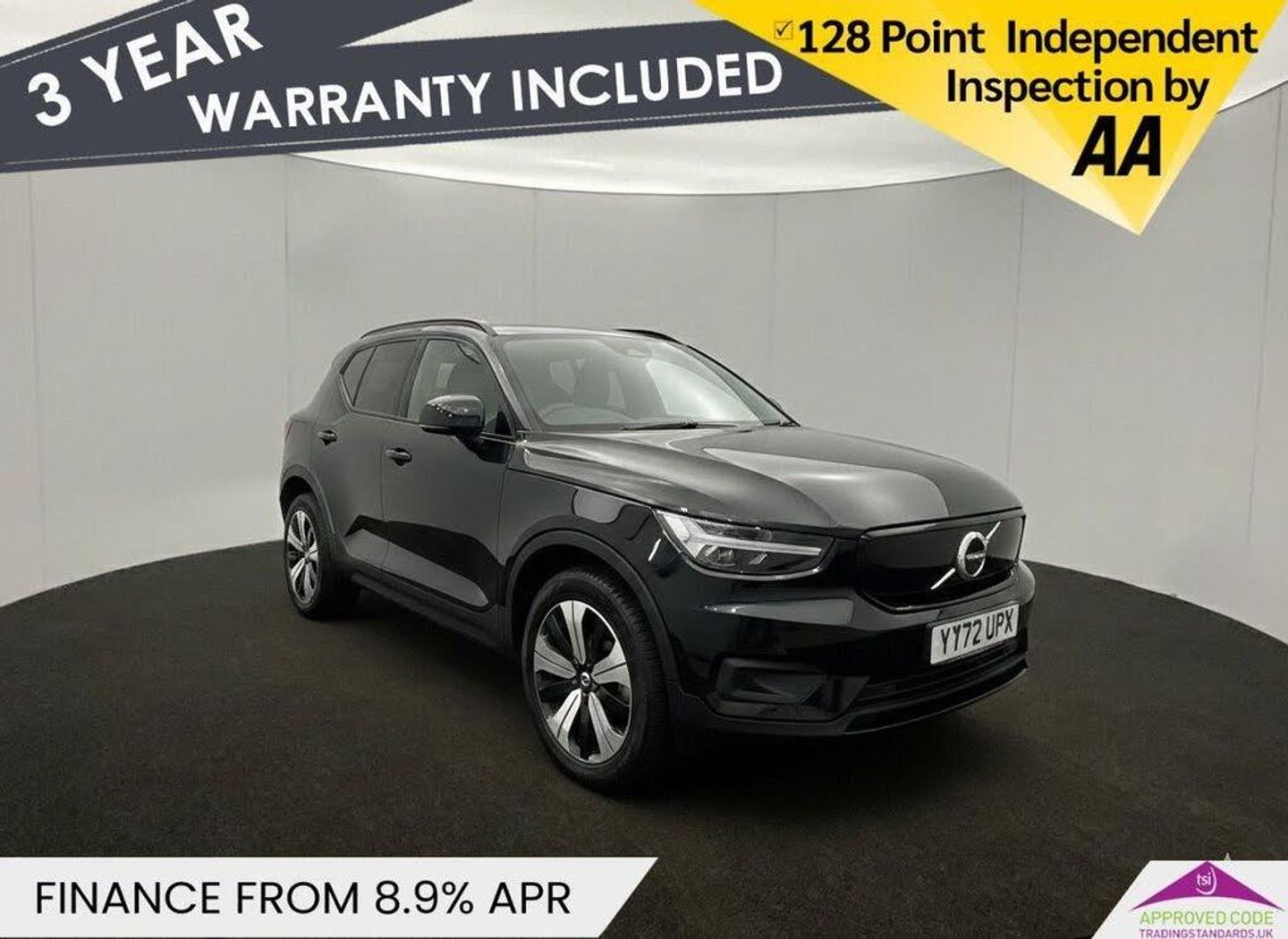 12.3in Progressive Driver Display, 12v Socket - Front Tunnel Console and Luggage Compartment, 19in Alloy Wheels - 5 Double Spoke - Diamond Cut - Black, 2-Zone Electronic Climate Control with Rear Air Vents - CleanZone Air Quality System with Pollen Filter, 3-Spoke Tailored Sports Steering Wheel, 7m 10amp Charge Cable with 3-Pin Plug and 4.5m 3-Phase 32 amp Type 2 - Mode 3 Charge Cable, 9in Centre Console Portrait Touch Screen, A-Pillar Parking Ticket Holder, Adaptive Brake Lights including High Level LED Brake Light, Adjustable Steering Force, Anti-Theft Alarm including Immobiliser - Volume Sensor and Level Sensor, Autodimming Interior Mirror, Autofolding Heated Power Door Mirrors, Automatic Headlight Levelling System, Automatic LED Headlights with Active High Beam incorporating Day Running Lights, Black Stone - Pillars - Roof and Door Mirrors, Bluetooth Handsfree System, Care Key with User Defined Top Speed, Centre Console Cupholders and Storage, City Safety, Colour Co-Ordinated Front Covered Grille, Convenient Entry and Start, Cruise Control, DAB - Digital Audio Broadcasting Radio, Dark Tinted Windows - Rear Side Windows and Rear Screen, Driver Knee Airbag, Dual Stage Driver and Passenger Airbags, Electric Front Axle Drive, First Aid Kit, Fixed Rear Seat Headrests, Floor Mats, Front Footwell Illumination, Front Load Compartment - 31 Litres, Front Reading Lights and Theatre Lighting, Front Seat Cushion Extensions, Front Tunnel Pocket and Integrated Waste Bin, Front and Rear Power Windows, Glovebox Bag Hook, Glovebox Compartment Illumination, Google Automotive Services, Height Adjustable Passenger Seat, Height and Reach Adjustable Steering Column, Height and Tilt Adjustable Driver Seat, High Gloss Black Centre Tunnel and Centre Screen Surround Deco, High Gloss Black Window Trim - Front and Rear Skidplate and Deco Lower Front Bumper, High Performance Sound, Hill Descent Control, Hill Start Assist, Home Safe and Approach Lighting, IC - Inflatable Curtains - Full Length, ISOFIX Attachment - Front Passenger and Outer Rear Seats, Illuminated Vanity Mirrors with Ticket Holder, Key Integrated Remote Control Central Locking including Fuel Flap with Deadlocking System and Auto Open-Close Power Windows, Lane Keeping Aid with Driver Alert Control, Load Protection Net, Locking Wheel Nuts, Low Speed Exterior Sound Speaker, Luggage Compartment Illumination, Multi-Directional Lumbar Support, Oncoming Lane Mitigation, Origin Inlay, Passenger Airbag Cut-Off Switch, Power Child Locks - Rear Doors, Power Operated Tailgate, Private Locking for Tailgate, Rain Sensor - Automatic Windscreen Wiper Activation, Rear Armrest with Cupholders, Rear Park Assist, Recharge Embossed Rear Side Roof Pillar, Recharge Tread Plates - Front, Road Sign Information Display, Roof Antenna, Roof Rails - Integrated High Gloss Black, Roof Spoiler, Run-Off Road Mitigation, Run-Off Road Protection, SIPS - Side Impact Protection System, SIPS Airbags - Front Seats, Seatbelt Reminder and Pretensioners, Slippery Road and Hazard Light Alert, Speed Limiter, Speed Sensitive Steering, Stability and Traction Control, Steering Wheel Remote Infotainment Controls, Touring Chassis, Tyre Pressure Monitoring System, Tyre Sealant Kit and Compressor, Underfloor Luggage Compartment Storage, Vehicle Deceleration Control, Versatile Split Folding Rear Seats - 60-40, Visible VIN Plate, Volvo Cars Services with App, WHIPS - Whiplash Protection System - Front Seats, Warning Triangle, Wireless-Inductive Mobile Phone Charging, Connect Textile-Microtech - Fjord Blue, Onyx Black