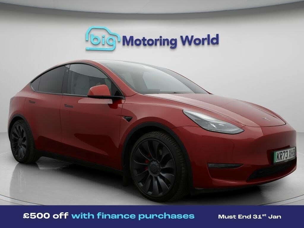 £500 towards your finance depo-Our Tesla Model Y is finished in Red. Specification includes a range of fantastic features including £500 towards your finance deposit, All Wheel Drive, 21'' Alloy Wheels, Leather Seats, Satellite Navigation, Privacy Glass, Heated Seats, Rear View Camera, Heated Steering Wheel, Bluetooth Specification information is supplied by CAPHPI and may vary to the actual car. This data does not form any part of a buying contact. Please check specification prior to purchase in-store. The MOT is valid until October 2026, visit bigmotoringworld.co.uk for more photos, a 360 tour, service history and a free HPI report.Were BIG on peace of mind and this Red Tesla Model Y has completed our comprehensive 200 point inspection and passed all checks. Its ready for you to drive away with immediate collection in-store. We include a 90-day warranty as standard plus an option to extend for up to 3 years.Reserve this car exclusively for you, safely and securely at bigmotoringworld.co.uk, with a fully refundable £99 deposit. Test drive before you buy, with no commitment, no hassle and a completely haggle free experience. Still searching and want to see thousands more cars? We are BIG on choice with over 8000 cars to choose from.Visit our award winning web site bigmotoringworld.co.uk.Were Big Motoring World and were BIG on what matters to you.