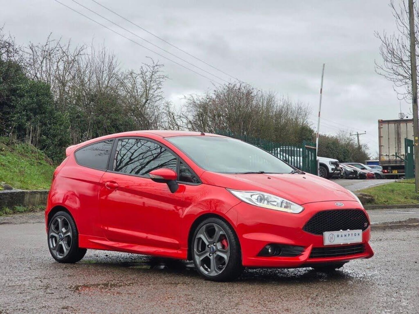 Race Red, 17in Alloy Wheels - Flash Grey, Ambient Lighting, Bumpers - Front and Rear Body Colour, Centre Console, Chrome Tipped Dual Exhaust Pipe, Courtesy Light - Front with Map Reading Lights, Courtesy Light - Overhead with Theatre-Style Dimming, Courtesy Light - Rear, Door Handles - Body Colour, Door Mirrors - Electrically-operated and Heated - Integrated Side Indicators - Body Colour Housing, Double Locking, EPAS - Electric Power Assisted Steering, ESP - Electronic Stability Programme, Electrically-Operated Front Windows with One Touch, Emergency Brake Warning - Automatic Hazard Warning Lights, Engine Immobiliser - Passive Anti-theft System, First Aid Kit and Warning Traingle Storage, Floor Mats - Front and Rear with Double Stitching, Footwell Lights - Driver and Passenger, Ford Easy Fuel Capless Refuelling System with Misfuel Inhibitor, Ford Power Starter Button, Front Fog Lights - Black Bezel Rings, Gear Shift Indicator, Glovebox - Illuminated, Halogen Projector Headlights with Silver Surrounds and LED Daytime Running Lights, Headlights - Courtesy Delay, Headliner - Black Woven, Heated Driver and Passenger Seats, High-Mounted Rear Brake Light, Hill Start Assist, IPS - Intelligent Protection System, Interior Door Lever - Chrome Finish, Leather-Trimmed Handbrake, Leather-Trimmed ST Steering Wheel and Gearshift with Red Stitching, Loadspace Compartment Light, Loadspace Floor Carpet, Locking Wheel Nuts, Manual Air Conditioning, MyKey, Pedals - Sports, Pollen Filter, Power Point Socket - 12 V, Quickclear Heated Windscreen, Rear Lights - LED Night Signature, Rear Privacy Glass, Remote Central Locking with Two Key Fobs, Removable Package Tray, ST Front Lower Grille - Black, ST Front Upper Grille Insert - High Gloss Black Mesh, Scuff Plates with ST Logo, Seats - Drivers 4-Way Manual Adjustment, Sony CD Radio with DAB and Ford Sync, Steering Column - Rake and Reach Adjustment, Suspension - Front Stabiliser Bar, Suspension - ST - Lowered Ride Height, Tailgate Handle - Body Colour, Tailgate Wash-Wipe, Thatcham Alarm, Threshold Plates - Front Stainless Steel with ST Logo, Trip Computer, Tyre Pressure Monitoring System, Tyre Repair Kit, Unique ST Full Bodystyling Kit with Large Spoiler, Unique ST Leather Gearshift Knob, Wipers - Front Variable Intermittent