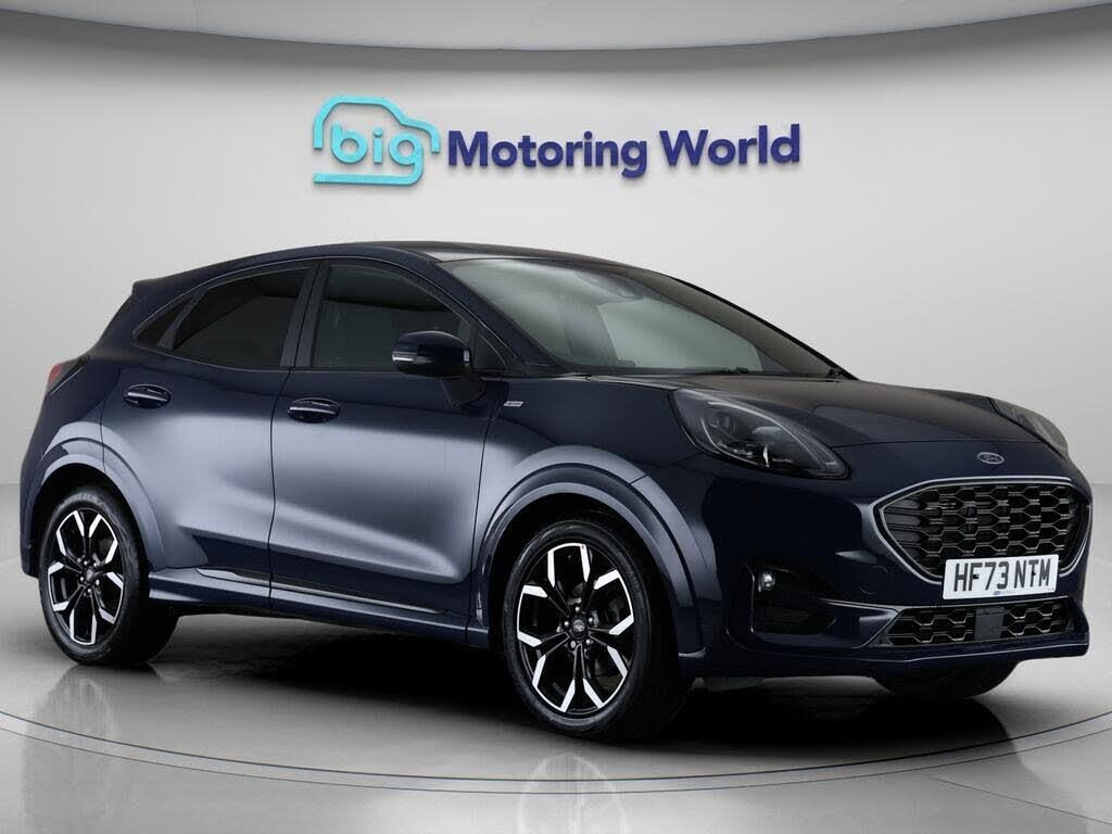 Part Leather Seats,Lane Assist-Our Ford Puma is finished in Blue. Specification includes a range of fantastic features including Part Leather Seats, Lane Assist, Satellite Navigation, Ford SYNC, Privacy Glass, ST Style Pack, Heated Windscreen, Bluetooth, Parking Sensors, Flat Bottom Steering Wheel Specification information is supplied by CAPHPI and may vary to the actual car. This data does not form any part of a buying contact. Please check specification prior to purchase in-store. The MOT is valid until September 2026, visit bigmotoringworld.co.uk for more photos, a 360 tour, service history and a free HPI report.Were BIG on peace of mind and this Blue Ford Puma has completed our comprehensive 200 point inspection and passed all checks. Its ready for you to drive away with immediate collection in-store. We include a 90-day warranty as standard plus an option to extend for up to 3 years.Reserve this car exclusively for you, safely and securely at bigmotoringworld.co.uk, with a fully refundable £99 deposit. Test drive before you buy, with no commitment, no hassle and a completely haggle free experience. Still searching and want to see thousands more cars? We are BIG on choice with over 8000 cars to choose from.Visit our award winning web site bigmotoringworld.co.uk.Were Big Motoring World and were BIG on what matters to you.