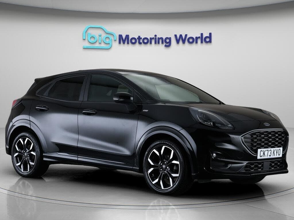 Part Leather Seats,Lane Assist-Our Ford Puma is finished in Black. Specification includes a range of fantastic features including Part Leather Seats, Lane Assist, Satellite Navigation, Ford SYNC, Privacy Glass, ST Style Pack, Heated Windscreen, Bluetooth, Parking Sensors, Flat Bottom Steering Wheel Specification information is supplied by CAPHPI and may vary to the actual car. This data does not form any part of a buying contact. Please check specification prior to purchase in-store. The MOT is valid until September 2026, visit bigmotoringworld.co.uk for more photos, a 360 tour, service history and a free HPI report.Were BIG on peace of mind and this Black Ford Puma has completed our comprehensive 200 point inspection and passed all checks. Its ready for you to drive away with immediate collection in-store. We include a 90-day warranty as standard plus an option to extend for up to 3 years.Reserve this car exclusively for you, safely and securely at bigmotoringworld.co.uk, with a fully refundable £99 deposit. Test drive before you buy, with no commitment, no hassle and a completely haggle free experience. Still searching and want to see thousands more cars? We are BIG on choice with over 8000 cars to choose from.Visit our award winning web site bigmotoringworld.co.uk.Were Big Motoring World and were BIG on what matters to you.