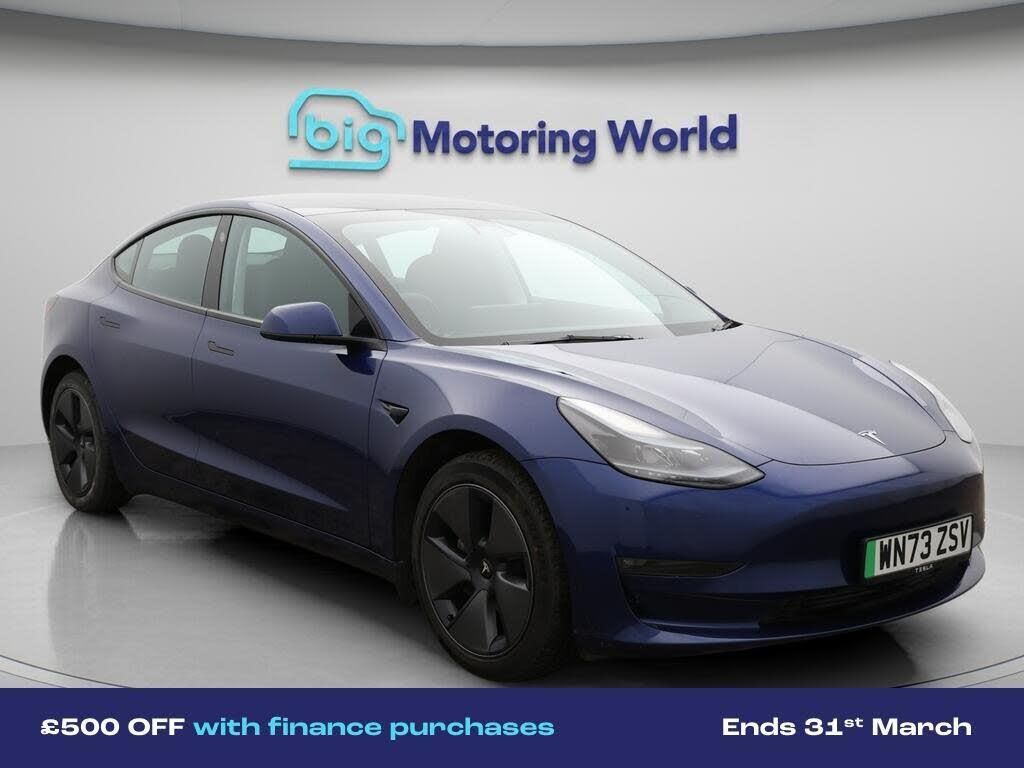 £500 towards your finance depo-Our Tesla Model 3 is finished in Blue. Specification includes a range of fantastic features including £500 towards your finance deposit, 18'' alloy wheels, Lane Assist, Heated Seats, Rear View Camera, Heated Rear Seats, Heated Steering Wheel, Internet, Bluetooth, Blind Spot Assist Specification information is supplied by CAPHPI and may vary to the actual car. This data does not form any part of a buying contact. Please check specification prior to purchase in-store. The MOT is valid until November 2026, visit bigmotoringworld.co.uk for more photos, a 360 tour, service history and a free HPI report.Were BIG on peace of mind and this Blue Tesla Model 3 has completed our comprehensive 200 point inspection and passed all checks. Its ready for you to drive away with immediate collection in-store. We include a 90-day warranty as standard plus an option to extend for up to 3 years.Reserve this car exclusively for you, safely and securely at bigmotoringworld.co.uk, with a fully refundable £99 deposit. Test drive before you buy, with no commitment, no hassle and a completely haggle free experience. Still searching and want to see thousands more cars? We are BIG on choice with over 8000 cars to choose from.Visit our award winning web site bigmotoringworld.co.uk.Were Big Motoring World and were BIG on what matters to you.
