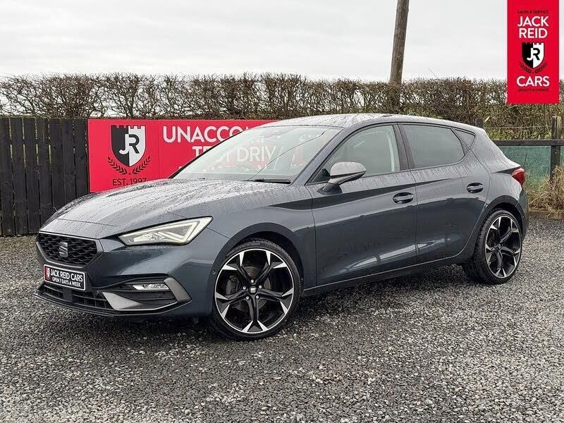Check out what's all included in this 2021 Seat Leon 1.5 TSI EVO FR 5dr:. Media system plus with navigation.. Digital cockpit.. Full link smartphone integration.. Park assist.. Flat bottomed perforated leather steering wheel.. Smartphone wireless charging pad.. Front sports seats.. Four x USB Type C ports.. FR sports bumper.If you like the look of this car and would like to come for a look or an unaccompanied test drive feel free to call down anytime or get in touch to make an appointment. We are open 7 days a week for your convenience!We have one of the largest numbers of cars for sale in our area with up to 200 cars in stock ready to view! We stock a variety of makes and models such as Audi, BMW, Seat, Range Rover, Mercedes, Jaguar and many more!All our cars come warranted by Jack Reid Cars meaning that we make all our decisions in house unlike unreliable warranty companies with too many terms and conditions.We look forward to hearing from you!This car is shown with an optional new alloy wheel and tyre upgrade or it can be returned to the standard wheels, whichever suits you best. Please contact sales for pricing.