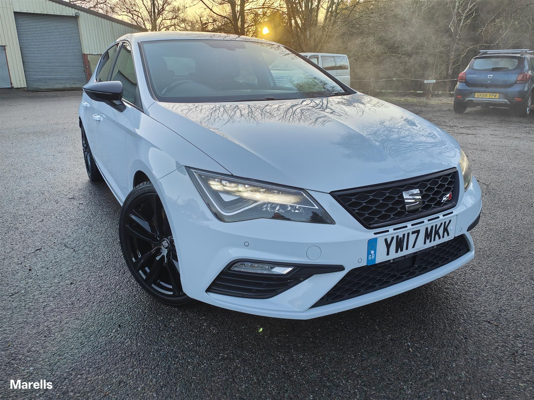 Seat Leon Cupra 2.0TSI 6 speed manual, 5 door in Nevada white, black half leather/seats, immaculate 19" wheels finished in black. Climate control, touchscreen navigation with Apple car play, DAB digital radio & Bluetooth phone, multi-function steering wheel, voice activated on board computer, front & rear parking sensors, LED headlights, cruise control.