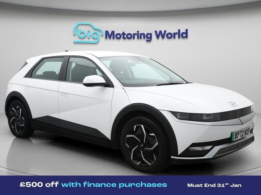 £500 towards your finance depo-Our Hyundai IONIQ 5 is finished in White. Specification includes a range of fantastic features including £500 towards your finance deposit, 19'' Alloy wheels, Apple CarPlay, Satellite Navigation, Wireless Phone Charging, Bluetooth, Parking Sensors, Real Time Traffic Info, 2 Zone Climate, Cruise Control Specification information is supplied by CAPHPI and may vary to the actual car. This data does not form any part of a buying contact. Please check specification prior to purchase in-store. The MOT is valid until January 2027, visit bigmotoringworld.co.uk for more photos, a 360 tour, service history and a free HPI report.Were BIG on peace of mind and this White Hyundai IONIQ 5 has completed our comprehensive 200 point inspection and passed all checks. Its ready for you to drive away with immediate collection in-store. We include a 90-day warranty as standard plus an option to extend for up to 3 years.Reserve this car exclusively for you, safely and securely at bigmotoringworld.co.uk, with a fully refundable £99 deposit. Test drive before you buy, with no commitment, no hassle and a completely haggle free experience. Still searching and want to see thousands more cars? We are BIG on choice with over 8000 cars to choose from.Visit our award winning web site bigmotoringworld.co.uk.Were Big Motoring World and were BIG on what matters to you.