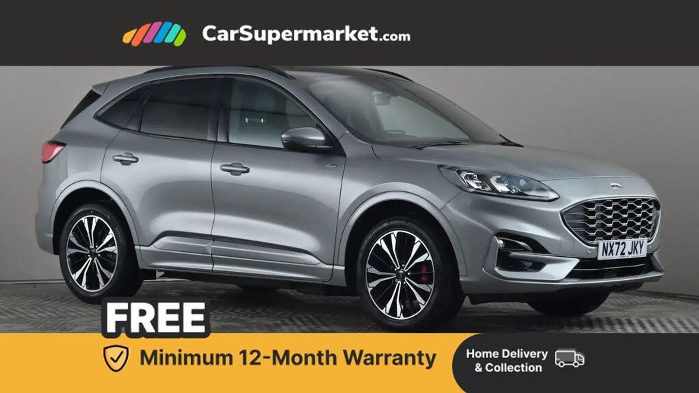 12.3" digital colour instrument cluster,Ford easy fuel,Ford SYNC 3 with 8" TFT LCD touchscreen, App Link, andriod auto/apple carPlay, emergency assistance and navigation with Ford pass connect,Front and rear parking sensors,Geo awareness,Hands free power tailgate,Lane keeping aid with lane departure warning,Power assist steering,Rear view camera,Selectable drive modes,Service interval indicator,3-Pin Home charge cable (230V/16A Domestic socket),3.7 kW monophase on board charger,Sports suspension,Twist beam rear suspension,B&O premium audio system with 10 speakers and subwoofer, 2 USB ports, DAB radio/CD,Auto headlamps with high and low beam,Black roof rails,Day/night rear view mirror,Front LED fog lamps,Large rear spoiler,LED daytime running lights,LED rear lights,Power folding heated door mirrors with puddle lights,Power front/rear windows with global close,Power opening panoramic roof,Privacy glass,Quickclear heated windscreen,Rear side wing doors,Rear wiper,ST Line body styling kit with unique front and rear fascia and bumper, rear painted diffuser, front painted skid plates, dark mesh upper grille,ST Line front scuff plates,Third brake light,Twin exhausts,10 way power adjustable drivers seat,2nd row sliding seats with 60:40 split,8 way manual passenger seat including lumbar support and height adjust,Alloy pedals,Centre console with electronic parking brake,Dark headlining and pillars,Electronic automatic temperature control (EATC),Flat bottomed leather steering wheel in sensico with red stitching,Front and rear head restraints,Heated passenger and driver seats,Heated rear seats,Heated steering wheel,Partial premium touch sensico leather upholstery with black cloth inserts and red stitching,Rear charging point,Single front passenger seat,Sports seats,3x3 point rear seatbelts,Airbags - front driver/passenger, front and rear curtain,Drivers knee airbag,Electronic stability control (ESC) and ABS,Ford MyKey Gen 2 safety system,Manual child proof rear door locks,Post collision braking,Pre collision assist with autonomous emergency braking,Rear seat Occupancy alert,Red brake calipers,Tyre pressure monitoring system,Engine immobiliser,Keyless entry and Ford power start button (Keyless start),Locking wheel nuts,Remote powered central double locking doors,Thatcham category 1 alarm,Solar Silver,Partial Sensico - Rapton Cloth - Black with Red Stitching