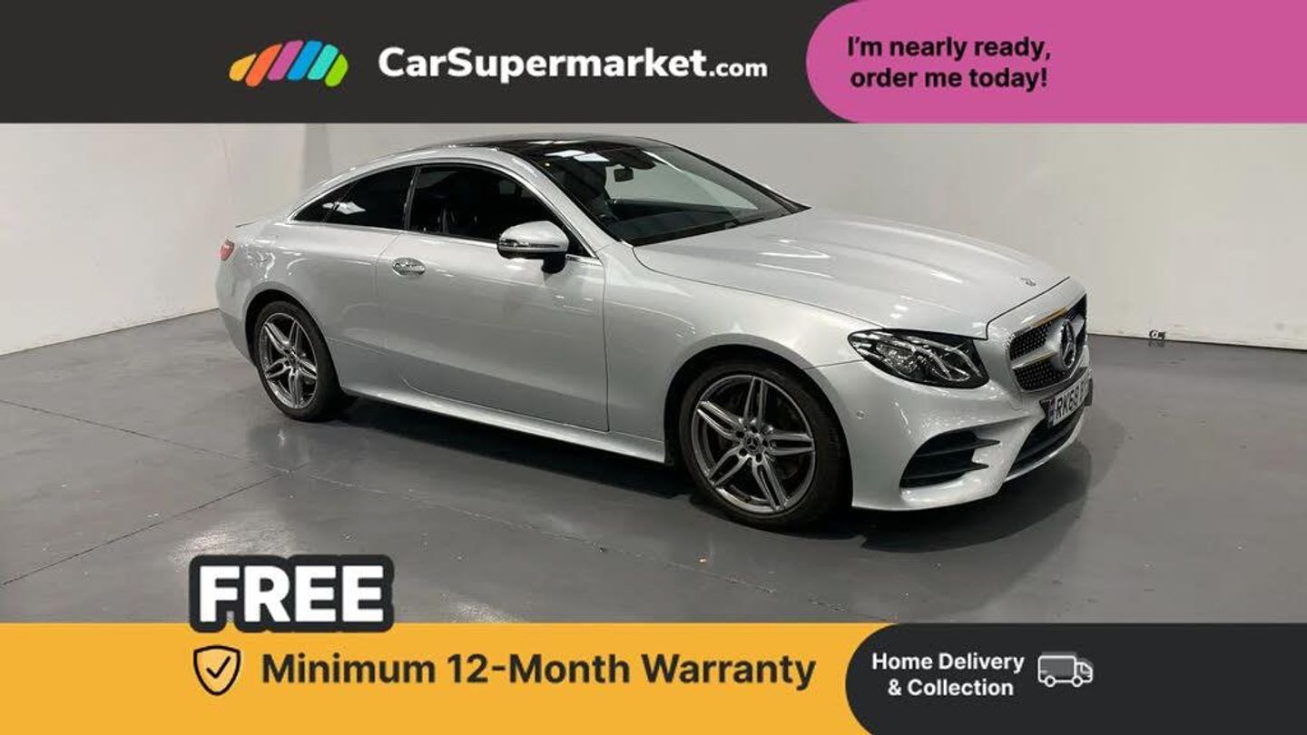 Analogue clock,Attention assist,Collision prevention assist plus,DYNAMIC SELECT with a choice of driving modes (ECO, Comfort, Sport, Sport+ and Individual),Mercedes connect me,Outside temperature display,Remote boot release,Touchpad with control wheel,Diesel particulate filter,Incorrect fuelling protection,2 USB ports in centre console,DAB Digital radio,Adaptive brake lights,AMG boot lid spoiler in body colour,Body colour door handles,Body coloured bumpers,Illuminated front door sill panels with Mercedes-Benz lettering,Pre-installation for roof rail systems,3-spoke flat bottom multifunction AMG steering wheel with Touch Control buttons, trimmed in black nappa leather,Black roof lining,Centre armrest and door handle illumination,Chrome door pins,Front and rear door pockets,Front footwell lights,Heated front seats,Interior lighting - 64 colour Ambient lighting,Interior rear light/integral reading lights,Isofix rear child seat fastenings,Multi contour front sports seats,Steering wheel gearshift paddles,Sunvisors with illuminated vanity mirrors,Memory pack - E Class,Mirror pack - E Class,Active brake assist,Adaptive driver and front passenger airbags,Drivers knee airbag,Front and rear window airbags,Head airbags,Hill hold function,Perforated front brake discs with "Mercedes-Benz" lettering,Seatbelt warning,Tyre pressure monitoring system,Warning triangle and first aid kit,Alarm system/interior protection/immobiliser,Chrome surround in electric key,Open pore black ash wood centre console,Run flat tyres,Active park assist with parktronic system,Bluetooth interface for hands free telephone,Brake wear warning light,Direct steering,Engine start/stop button,Instrument cluster with two tube-design round dials and 8.4-inch TFT multifunction display,Multi function trip computer,Reversing camera,Service indicator (ASSYST PLUS),Audio 20 with USB, touchpad and control wheel with Media Interface with Bluetooth interface and hands-free function,Steering wheel mounted audio controls,AMG bodystyling,AMG front, rear apron and side skirts,Automatic rain sensing wipers,Electric adjustable heated door mirrors,Electric front/rear windows with one touch/auto up/down,Electric tilt/slide panoramic sunroof,LED daytime running lights,LED Headlights,LED tail lights,Magic Vision Control heated windscreen wiper system,Polished aluminium upper window surround,Twin exhaust pipes,2 way rear head restraints,4 way adjustable front head restraints,40:20:40 split folding rear bench seat,Artico man-made leather upper dash trim,Bag hook in luggage compartment,Child seat recognition sensor,Cupholders in centre console,Dual zone automatic climate control,Easy entry seats,Front centre armrest with storage compartment,Front seat back map pockets,Front seatbelt electric feeders,Height/reach adjust steering wheel,Height/reach adjustable steering column,Illuminated air conditioned glovebox,Lockable glovebox,Multi function steering wheel,Rear centre armrest with 2 cupholders + storage,Sports pedals with stainless steel surfaces and rubber studs,Storage net in luggage compartment,Stowage compartment with 12V socket,Sunglasses holder,Twin front cupholders,Keyless Go comfort pack - E Class,3 point seatbelts,ABS,Active bonnet,Adaptive brake system,Crash sensor (auto door unlocking),Electronic parking brake,ESP with ASR,Front seatbelt pretensioners,Front side airbags,Seat occupancy sensor,Remote central locking
