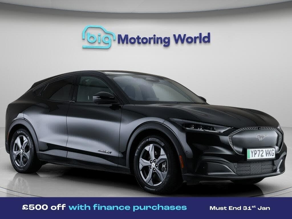 £500 towards your finance depo-Our Ford Mustang Mach-E comes with optional extras worth £2,500. Specification includes a range of fantastic features including £500 towards your finance deposit, Panoramic Roof, 18'' alloy wheels, Leather Seats, Apple CarPlay, Adaptive Cruise Control, Electric Seats, Bang & Olufsen Speakers, Lane Assist, Android Auto Specification information is supplied by CAPHPI and may vary to the actual car. This data does not form any part of a buying contact. Please check specification prior to purchase in-store. The MOT is valid until November 2026, visit bigmotoringworld.co.uk for more photos, a 360 tour, service history and a free HPI report.Were BIG on peace of mind and this Black Ford Mustang Mach-E has completed our comprehensive 200 point inspection and passed all checks. Its ready for you to drive away with immediate collection in-store. We include a 90-day warranty as standard plus an option to extend for up to 3 years.Reserve this car exclusively for you, safely and securely at bigmotoringworld.co.uk, with a fully refundable £99 deposit. Test drive before you buy, with no commitment, no hassle and a completely haggle free experience. Still searching and want to see thousands more cars? We are BIG on choice with over 8000 cars to choose from.Visit our award winning web site bigmotoringworld.co.uk.Were Big Motoring World and were BIG on what matters to you.