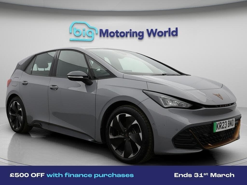 £500 towards your finance depo-Our CUPRA Born is finished in Grey. Specification includes a range of fantastic features including £500 towards your finance deposit, 18'' alloy wheels, Apple CarPlay, Lane Assist, Android Auto, Satellite Navigation, Rear View Camera, Heated Steering Wheel, Bluetooth, Parking Sensors Specification information is supplied by CAPHPI and may vary to the actual car. This data does not form any part of a buying contact. Please check specification prior to purchase in-store. The MOT is valid until February 2027, visit bigmotoringworld.co.uk for more photos, a 360 tour, service history and a free HPI report.Were BIG on peace of mind and this Grey CUPRA Born has completed our comprehensive 200 point inspection and passed all checks. Its ready for you to drive away with immediate collection in-store. We include a 90-day warranty as standard plus an option to extend for up to 3 years.Reserve this car exclusively for you, safely and securely at bigmotoringworld.co.uk, with a fully refundable £99 deposit. Test drive before you buy, with no commitment, no hassle and a completely haggle free experience. Still searching and want to see thousands more cars? We are BIG on choice with over 8000 cars to choose from.Visit our award winning web site bigmotoringworld.co.uk.Were Big Motoring World and were BIG on what matters to you.