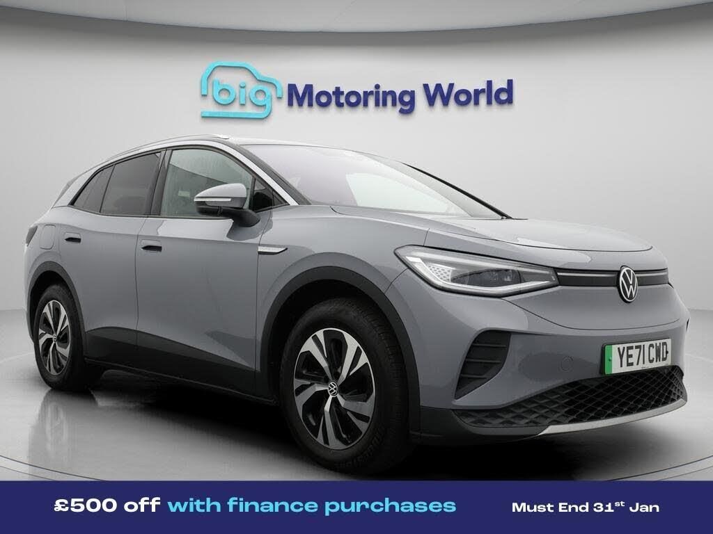 £500 towards your finance depo-Our Volkswagen ID.4 comes with optional extras worth £620. Specification includes a range of fantastic features including £500 towards your finance deposit, Part Leather Seats, Adaptive Cruise Control, Satellite Navigation, Privacy Glass, Heated Seats, Rear View Camera, Heated Steering Wheel, Internet, Bluetooth Specification information is supplied by CAPHPI and may vary to the actual car. This data does not form any part of a buying contact. Please check specification prior to purchase in-store. The MOT is valid until November 2026, visit bigmotoringworld.co.uk for more photos, a 360 tour, service history and a free HPI report.Were BIG on peace of mind and this Grey Volkswagen ID.4 has completed our comprehensive 200 point inspection and passed all checks. Its ready for you to drive away with immediate collection in-store. We include a 90-day warranty as standard plus an option to extend for up to 3 years.Reserve this car exclusively for you, safely and securely at bigmotoringworld.co.uk, with a fully refundable £99 deposit. Test drive before you buy, with no commitment, no hassle and a completely haggle free experience. Still searching and want to see thousands more cars? We are BIG on choice with over 8000 cars to choose from.Visit our award winning web site bigmotoringworld.co.uk.Were Big Motoring World and were BIG on what matters to you.