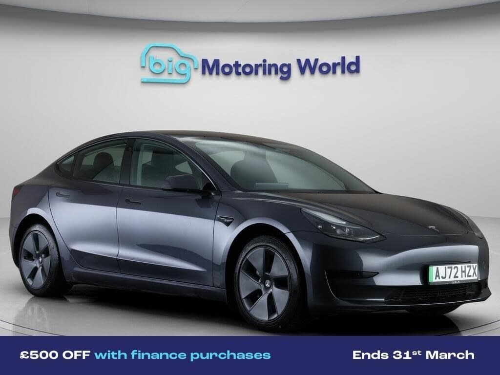 £500 towards your finance depo-Our Tesla Model 3 is finished in Grey. Specification includes a range of fantastic features including £500 towards your finance deposit, Panoramic Roof, 18'' alloy wheels, Leather Seats, Apple CarPlay, Satellite Navigation, Rear View Camera, Bluetooth, Parking Sensors, Cruise Control Specification information is supplied by CAPHPI and may vary to the actual car. This data does not form any part of a buying contact. Please check specification prior to purchase in-store. The MOT is valid until December 2026, visit bigmotoringworld.co.uk for more photos, a 360 tour, service history and a free HPI report.Were BIG on peace of mind and this Grey Tesla Model 3 has completed our comprehensive 200 point inspection and passed all checks. Its ready for you to drive away with immediate collection in-store. We include a 90-day warranty as standard plus an option to extend for up to 3 years.Reserve this car exclusively for you, safely and securely at bigmotoringworld.co.uk, with a fully refundable £99 deposit. Test drive before you buy, with no commitment, no hassle and a completely haggle free experience. Still searching and want to see thousands more cars? We are BIG on choice with over 8000 cars to choose from.Visit our award winning web site bigmotoringworld.co.uk.Were Big Motoring World and were BIG on what matters to you.