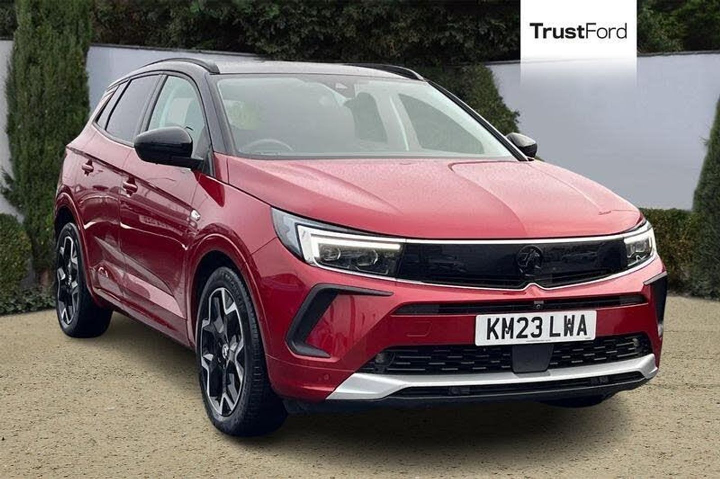 Central facia display with digital clock, outside air temperature and audio information, Digital fuel gauge with low fuel level warning light, Digital rev counter, Digital speedometer, Digital water temperature gauge with warning light, Drive mode selector (Eco, Normal, Sport), Driver drowsiness alert system, Driver information - Total mileage, service indicator, oil life, Front and rear parking distance sensors with 360 degree rear view camera and advanced park assist, Gearshift up/down indication light, Highway integration assist (Lane positioning assistant and Adaptive cruise control), Lane departure warning system, Lane keep assist, Lights on audible warning, Multi function trip computer - Trip odometer, vehicle range, average speed and fuel economy, instantaneous fuel economy and driving time, Multimedia Pure Panel Navigation System incl 10 colour touchscreen, 12 digital instrument cluster & satellite naviagtion, Power operated tailgate with foot sensor, Side blind spot alert, Speed sensitive electric power assisted steering, Speed sign recognition, Start/stop system, Vauxhall connect including Emergency call (SOS e-call) and Breakdown call (b-call), Wireless charger for mobile devices, Automatic lighting control, Automatically dimming anti dazzle rear view mirror, Black door mirrors, Black side window trim, Body colour door handles, Body colour lower front and rear bumpers, protective wheel arches and lower door cladding, Body colour upper front bumper, Collapsible windscreen wipers, Dark tinted rear windows, Door to door illumination, Electric adjustable/heated/folding door mirrors, Electrically operated front and rear windows with safety auto reverse and one touch up/down facility, Front wiper system spraying directly from wipers, Hazard warning lights, Heated rear screen with timed cut off, Heated windscreen, High beam assist, High gloss black exterior detailing, High gloss black Griffin for Vizor and tailgate with high gloss black Grandland tailgate lettering, High gloss black roof rails, High level centre rear brake light, IntelliLux adaptive LED pixel headlights and LED tail lights, Intermittent rear window wash/wipe, LED daytime running lights, LED front fog lights, Magic wash, Manual headlight beam levelling, Rain sensor windscreen wipers, Rear side wing doors, Rear spoiler, Reversing light, Shark fin aerial, Silver effect protective front and rear skid plate, Soundproof insulated windscreen, Two speed windscreen wipers with variable intermittent wipe, Upper and lower bumper design, Vizor front grille, Welcome lighting, 12V electrical accessory socket in front, 3 bench rear seats in 2nd row, 3 spoke heated flat bottom leather effect steering wheel with satin chrome effect bezel, 6 way adjustable Ergonomic active heated sports style front seats AGR approved with seat cushion extension and lumbar adjustment, 60/40 split folding rear seat with centre rear seat armrest and load though facility, Advanced predictive logic control system using a sun sensor, Alcantara upholstery, Ambient centre console downlighter, Automatic air direction and fan speed with manual override, Charcoal filter, Chrome effect interior door handles, Covered storage compartment in centre console and in driver armrest, Driver's centre armrest, Driver/passenger sunvisors with illuminated vanity mirrors, Dual zone electronic climate control, Front door pockets with 2.6 litre capacity, Front seat back storage pockets, Fully carpeted luggage area, Height adjustable headrests, Illuminated luggage area, ISOFIX on front passenger and rear outer seats, Luggage compartment cover, Reach + rake adjustable steering column, Rear centre seat head restraint, Rear door pockets with 1.8 litre capacity, Rear passenger compartment heating ducts, Rear reading lights, Two drinks holders in centre console, Anti-lock braking system (ABS), Automatic emergency braking with pedestrian detection, Child proof locks on rear doors, CSC - Cornering stability c