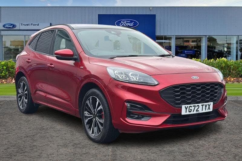 12.3 digital colour instrument cluster, Ford easy fuel, Ford SYNC 3 with 8 TFT LCD touchscreen, App Link, andriod auto/apple carPlay, emergency assistance and navigation with Ford pass connect, Front and rear parking sensors, Hands free power tailgate, Lane keeping aid with lane departure warning, Power assist steering, Rear view camera, Selectable drive modes, Service interval indicator, Auto headlamps with high and low beam, Black roof rails, Day/night rear view mirror, Front LED fog lamps, Large rear spoiler, LED daytime running lights, LED rear lights, Power folding heated door mirrors with puddle lights, Power front/rear windows with global close, Power opening panoramic roof, Privacy glass, Quickclear heated windscreen, ST Line body styling kit with unique front and rear fascia and bumper, rear painted diffuser, front painted skid plates, dark mesh upper grille, ST Line front scuff plates, Third brake light, Twin exhausts, 10 way power adjustable drivers seat, 2nd row sliding seats with 60:40 split, 8 way manual passenger seat including lumbar support and height adjust, Alloy pedals, Centre console with electronic parking brake, Dark headlining and pillars, Dual electronic automatic temperature control, Flat bottomed leather steering wheel in sensico with red stitching, Front and rear head restraints, Heated passenger and driver seats, Heated rear seats, Heated steering wheel, Partial premium touch sensico leather upholstery with black cloth inserts and red stitching, Rear charging point, Sports seats, ST Line front and rear floor mats, Steering wheel mounted paddle shift, 3x3 point rear seatbelts, Airbags - front driver/passenger, front and rear curtain, Drivers knee airbag, Electronic stability control (ESC) and ABS, Ford MyKey Gen 2 safety system, Manual child proof rear door locks, Post collision braking, Pre collision assist with autonomous emergency braking, Rear seat Occupancy alert, Red brake calipers, Tyre pressure monitoring system