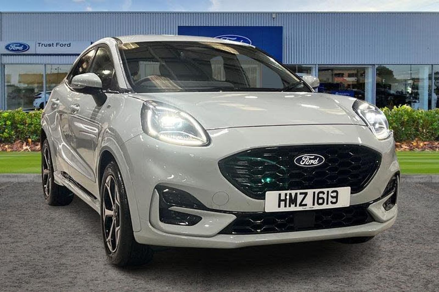 Driver impairment monitor, Emergency call service, Ford easy fuel, Full digital 12.8 instrument cluster, Lane keeping aid with lane departure warning, Power assist steering, Selectable drive modes(Normal, Eco, Sport, Slippery and Trail), Speed sign recognition, Automatic headlights with rain sensing wipers and auto high beam, Front fog lamps, LED daytime running lights, LED rear lamps, LED third brake light, Power foldable heated door mirrors with puddle lamps and puma logo protection, Quickclear heated windscreen, Rear privacy glass, Rear side wing doors, Rear wiper, ST-Line body styling kit with unique grille, 3 seat bench in 2nd row, Centre console with armrest and stowage, Electronic automatic temperature control (EATC), Ford megabox extended bootspace, Front and rear head restraints, Front floor mats, Manual 4 way driver seat adjust with lumbar adjustment, Single front passenger seat, ST- Line cloth trim with red stitching, 3 rear seatbelts, Child safety lock, Electronic stability control (ESC) and hill start assist, Pre-collision assist with autonomous emergency braking, pedestrian/cyclist detection & post-collision braking, Tyre pressure monitoring system (TPMS)