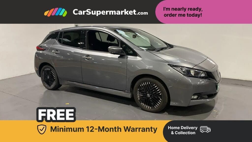 360 degree colour camera view,7" full colour TFT screen combimeter,8" colour display with touchscreen,Apple car play/Android Auto,Blind spot intervention,Blind spot warning,E Pedal,eCall emergency call system,Electric power assisted steering,EV telematics system,Front and rear parking sensors,Intelligent around view monitor,Intelligent Cruise control (ICC),Intelligent driver alert system,Intelligent lane intervention,Lane departure warning system,Moving object detection,Navigation system with voice control,Nissan connect services app (air conditioning control, cabin heating and charging),Rear cross traffic alert,Speed limiter,Trip computer,39kWh usable battery capacity,6.6 kw On-board charger,Charging port remote opening,Mac Pherson strut front suspension and twist beam axle rear suspension,Max DC charging power, ChaDeMo type: up to 50kW,Single motor,6 speakers,Audio system with USB,Bluetooth with audio streaming,DAB Digital radio,Rear USB ports,Aero roof spoiler,Auto dimming rear view mirror,Automatic activation of hazard warning lights,Automatic rain sensing wipers,Chrome door handles,Electric front/rear windows,Electrically adjustable and folding door mirrors,Follow me home headlights,Grey rear bumper finisher,High beam assist,Illuminated charge port,Intelligent auto headlights,LED signature daytime running lights with directional indicator,LED signature rear lights,LED third brake light,Rain sensor,Rear privacy glass,Rear side wing doors,Rear wiper,Shark fin antenna,12V socket,3 seat bench in 2nd row,60/40 split folding rear seat,Automatic climate control with pollen filter and timer,Energy saving cabin heating system with heat pump,Front centre console and armrest,Front head restraints,Front seatback pockets,Height adjustable driver seat,Isofix child seat anchor points,Manual adjust driver/passenger seats,Multifunction leather steering wheel,PTC (Positive Temp Co-efficent) heater,Rake and reach adjustable steering column,Rear assist grips,Rear head restraints,Single front passenger seat,Telescopic steering wheel adjustment,Woven fabric upholstery,Heat pack with Heated front seats - Leaf,3 point front seatbelts with pre-tensioners,3x3 point rear seatbelts,ABS with EBD and brake assist,Curtain airbags,Driver and passenger airbags,Electrically driven intelligent braking system,Electronic Stability Programme (ESP),Front and rear vented brake discs,Front seatbelt pretensioners + load limiters,Height adjustable front seatbelts,Hill start assist,Intelligent emergency braking with pedestrian recognition,Intelligent ride control,Intelligent trace control,Manual child proof rear door locks,Mechanical parking brake,Nissan safety shield,Seatbelt reminder for driver and front passenger,Side airbags,Traction control,Tyre pressure monitoring system,VDC Dynamic Vehicle Control,Deadlock,Immobiliser,Intelligent Key with push button starter,Remote central locking,Thatcham Cat.1 alarm,17" Diamond cut black alloy wheels