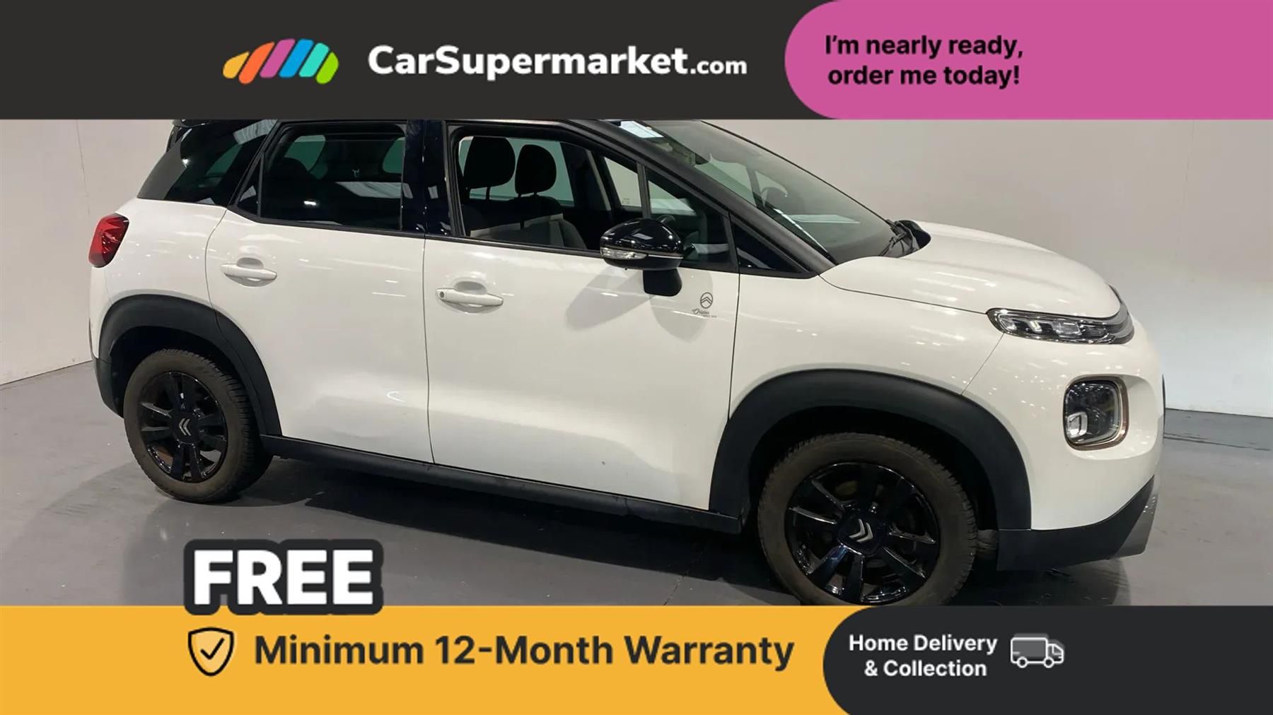 7" colour touch screen,Citroen connected nav with connect box and emergency assist system,Coffee Break Alert,Cruise control + speed limiter,Lane departure warning system,Mirror screen with mirror link, apple carplay and android auto,Multi function on board trip computer,Rev counter,Speed limit recognition and recommendation,Variable PAS,Bluetooth hands free and media streaming with USB socket and jack,Citroen connected DAB radio with 6 speakers,Steering wheel mounted controls for stereo and telephone,Auto dimming electrochrome rear view mirror,Automatic lights,Automatic windscreen wipers,Body colour bumpers,Body colour painted door handles,Dark tinted rear windows,Electric front windows + one touch + anti-pinch,Electric rear windows + anti-pinch,Electrically adjustable, heated and folding door mirrors,Front and rear aluminium effect bumper protectors,Front fog lights with cornering function,Halogen headlights with LED daytime running lights,Ink black roof bars,Rear wiper,0.5L Large bottle rear door storage,1.5L Large bottle front door storage,12 volt front socket,12 volt rear socket,60/40 split folding rear seat,Additional 12V socket in the rear,Automatic air conditioning,Boot light,Driver and passenger sunvisor with courtesy mirror,Floor console central storage with 2 cup holders,Front courtesy reading lights,Grey soft touch dashboard facia,Height adjustable driver's seat,Height adjustable front headrests,Height and reach adjustable steering wheel,ISOFIX outer rear seats mounting points including top tether,Lashing eyelets in boot,Leather gear knob,Leather steering wheel with satin chrome inserts and radio controls,Pull out boot floor,Tavoc cloth upholstery,Three height adjustable rear head restraints,Tilt adjustable rear seats (Two positions),City pack - C3 Aircross,Exterior colour pack - Origins - C3 Aircross,ABS with Electronic brakeforce distribution and Emergency braking assistance,Airbags - Driver/front passenger, front lateral and curtain,Drivers/passengers and rear seats unfastened seat belt warning,Electronic stability control,Five 3 point inertia reel seat belts,Front seatbelt pretensioners,Hill start assist function,Manual rear child locks,Tyre pressure monitor,Alarm,Automatic boot locking,Automatic door locking,Immobiliser,Locking wheel nuts,Remote central locking + deadlocks,16" Black matrix alloy wheels,Space saver spare wheel