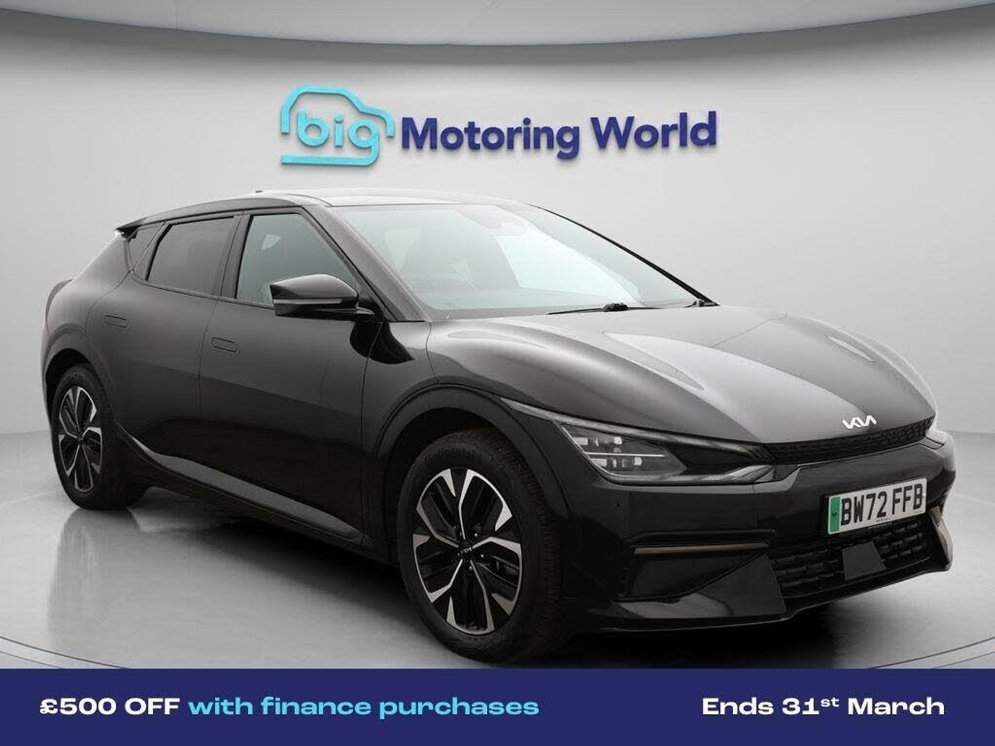 £500 towards your finance depo-Our Kia EV6 comes with optional extras worth £675. Specification includes a range of fantastic features including £500 towards your finance deposit, 19'' Alloy wheels, Apple CarPlay, Adaptive Cruise Control, Privacy Glass, Heated Seats, Rear View Camera, Heated Steering Wheel, Internet, Bluetooth Specification information is supplied by CAPHPI and may vary to the actual car. This data does not form any part of a buying contact. Please check specification prior to purchase in-store. The MOT is valid until February 2027, visit bigmotoringworld.co.uk for more photos, a 360 tour, service history and a free HPI report.Were BIG on peace of mind and this Black Kia EV6 has completed our comprehensive 200 point inspection and passed all checks. Its ready for you to drive away with immediate collection in-store. We include a 90-day warranty as standard plus an option to extend for up to 3 years.Reserve this car exclusively for you, safely and securely at bigmotoringworld.co.uk, with a fully refundable £99 deposit. Test drive before you buy, with no commitment, no hassle and a completely haggle free experience. Still searching and want to see thousands more cars? We are BIG on choice with over 8000 cars to choose from.Visit our award winning web site bigmotoringworld.co.uk.Were Big Motoring World and were BIG on what matters to you.-Multi Award Winning Website & Car Supermarket of the year WINNER 2018. Call now.