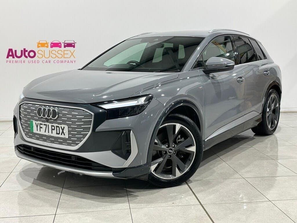 One Owner, Vat Qualifying ( Sale Price Includes Vat ), Recent Service By Audi Jan 2026 This 2022 Audi Q4 e-tron S line is a superb example, having had only one owner since new. This electric SUV combines sophisticated Audi design with advanced e-tron technology. It features a substantial 82 kWh battery, offering a maximum range of 312 miles when new, making it ideal for both daily commutes and longer journeys. Charging at home with a 7kW charger takes approximately 11 hours and 30 minutes, while rapid public charging can replenish the battery from empty to 80% in as little as 30 minutes. The S line trim enhances the Q4 e-tron's appeal with a suite of desirable features. You'll appreciate the convenience of the Audi Smartphone Interface, seamlessly integrating your Android Auto or Apple CarPlay. LED headlights with distinctive LED daytime running lights ensure excellent visibility, while rear parking sensors aid manoeuvrability. Inside, enjoy the comfort of auxiliary air conditioning and a 3-zone electronic climate control system, allowing personalised temperature settings for all occupants. Furthermore, the Q4 e-tron boasts a large boot space, providing ample room for luggage and shopping, setting it apart from many similar vehicles.