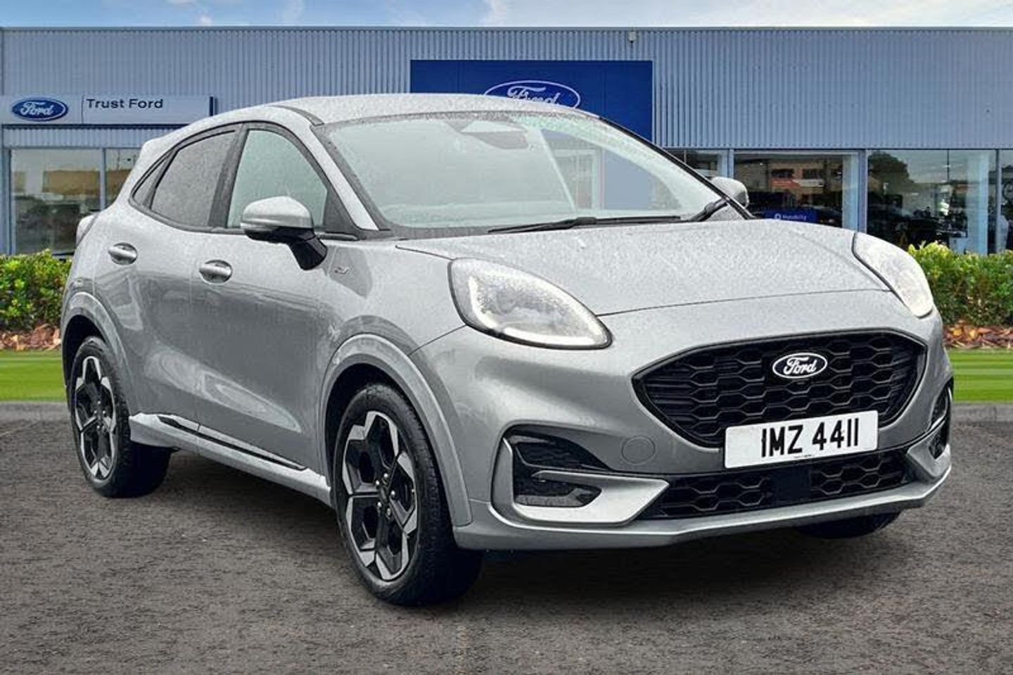 Driver impairment monitor, Emergency call service, Ford easy fuel, Full digital 12.8 instrument cluster, Lane keeping aid with lane departure warning, Power assist steering, Selectable drive modes(Normal, sport, Eco, trail, slippery), Speed sign recognition, Automatic headlights with rain sensing wipers and auto high beam, Front fog lamps, LED daytime running lights, LED rear lamps, LED third brake light, Power foldable heated door mirrors with puddle lamps and puma logo protection, Quickclear heated windscreen, Rear privacy glass, Rear side wing doors, Rear wiper, ST-Line X body styling kit, 3 seat bench in 2nd row, 4 way lumbar support for passenger seat, Centre console with armrest and stowage, Electronic automatic temperature control (EATC), Ford megabox extended bootspace, Front and rear head restraints, Front floor mats, Manual 4 way driver seat adjust with lumbar adjustment, Single front passenger seat, ST-Line X Premium synthetic leather upholstery, 3 rear seatbelts, Child safety lock, Electronic stability control (ESC) and hill start assist, Pre-collision assist with autonomous emergency braking, pedestrian/cyclist detection & post-collision braking, Tyre pressure monitoring system (TPMS)