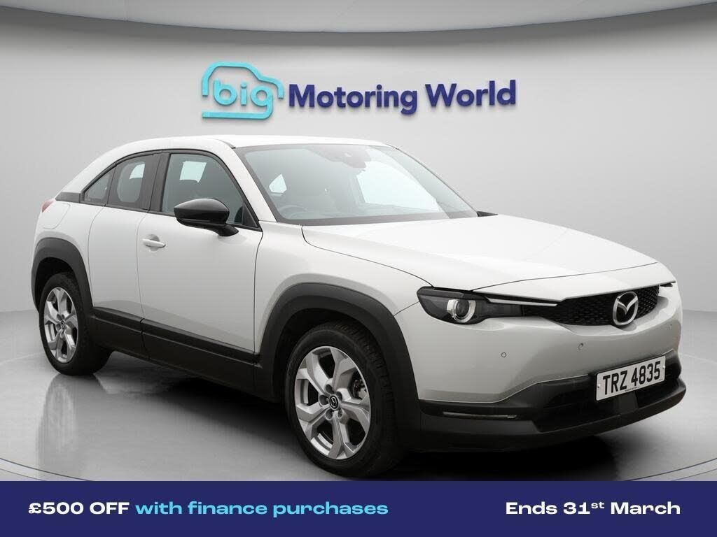 £500 towards your finance depo-Our Mazda MX-30 is finished in Silver. Specification includes a range of fantastic features including £500 towards your finance deposit, Head up Display, 18'' alloy wheels, Adaptive Cruise Control, Rear View Camera, Bluetooth, Blind Spot Assist, Parking Sensors, Paddle Shift, Cruise Control Specification information is supplied by CAPHPI and may vary to the actual car. This data does not form any part of a buying contact. Please check specification prior to purchase in-store. The MOT is valid until February 2027, visit bigmotoringworld.co.uk for more photos, a 360 tour, service history and a free HPI report.Were BIG on peace of mind and this Silver Mazda MX-30 has completed our comprehensive 200 point inspection and passed all checks. Its ready for you to drive away with immediate collection in-store. We include a 90-day warranty as standard plus an option to extend for up to 3 years.Reserve this car exclusively for you, safely and securely at bigmotoringworld.co.uk, with a fully refundable £99 deposit. Test drive before you buy, with no commitment, no hassle and a completely haggle free experience. Still searching and want to see thousands more cars? We are BIG on choice with over 8000 cars to choose from.Visit our award winning web site bigmotoringworld.co.uk.Were Big Motoring World and were BIG on what matters to you.