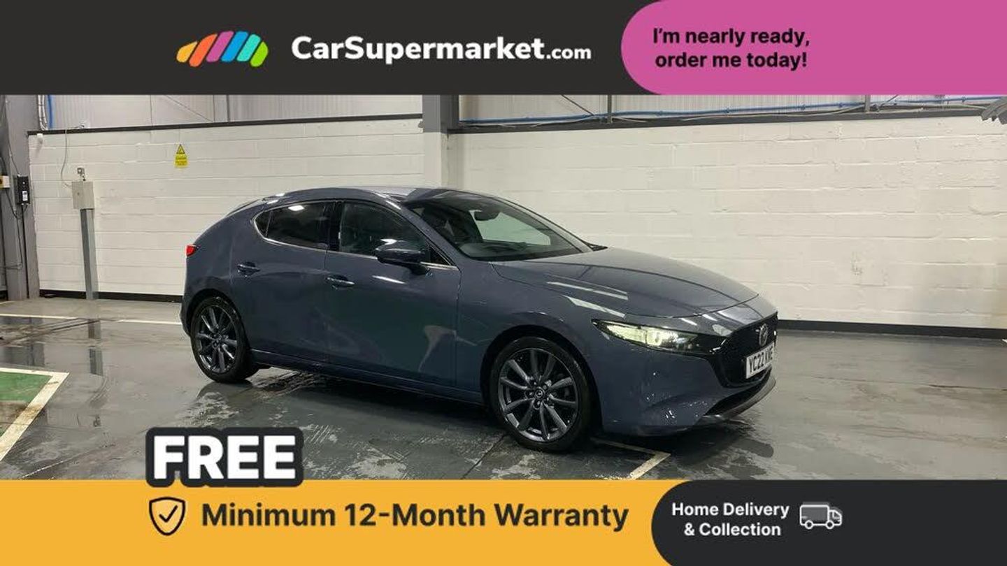 7" colour TFT display,8.8" Colour centre touch screen display with Mazda Connect infotainment,Apple car play/Android Auto,Audio transfer from bluetooth devices,Blind spot monitoring with rear cross traffic alert,Colour active driving display inc Windscreen projected,Traffic Sign Recognition, turn-by- turn navigation and Mazda Radar Cruise Control information,Digital instrument cluster,Driver attention alert system,E-call with GPS,Emergency stop signalling system,Engine start/stop button,Front and rear parking sensor with audible and visual warning,Head up Display,Integrated bluetooth with steering wheel mounted controls,Intelligent speed assist,Lane keep assist system (LAS) with Lane departure warning system (LDWS),Mazda connected services,Mazda Navigation System with european mapping,Mazda Radar Cruise Control,Mobile App interface,Multimedia Commander,PAS,Reversing camera,Service indicator,Traffic sign recognition (TSR),Trip computer,Cylinder Deactivation,i-stop,Mazda Multimedia System with AM / FM / DAB radio with 8 speakers,Adaptive LED Headlights,Auto dimming driver's door mirrors,B-pillar garnish in piano black,Body coloured, electrically adjustable, heated auto power folding door mirrors with integrated indicators,Coming/leaving home lighting function,Dark metallic finish signature wing,Dual chrome tailpipes tip,Dusk sensing headlights,Electric front/rear windows with one touch/auto up/down,Frameless auto dimming interior rear view mirror,Front body coloured bumper with black lower bezel,Front kodo turn signal,Gloss black finish front grille,Gloss black rear roof spoiler,LED indicator lights,LED third brake light,Privacy glass with dark tinting on rear side windows and rear window,Rain sensing front wipers with adjustable sensitivity and speed,Rear colour coded bumper with gloss black lower moulding,Rear fog lights,Rear side wing doors,Signature LED daytime running lights,Signature LED rear combination lights,Speed adjustable rear wash wiper with intermittent wipe,12v electrical power outlet,3 seat bench in 2nd row,60/40 split fold down rear seats,Black cloth door panel inserts,Cloth upholstery,Dark roof headlining, ceiling and pillars,Driver, front passenger and two rear door pockets,Driver, Front passenger and two rear grab handles with coathooks,Driver/passenger sunvisors + vanity mirrors (drivers side with ticket holder),Drivers seat manual slide recline and height adjustment,Dual zone climate control air conditioning,Folding rear centre armrest with two cup holders,Front and rear courtesy lamps,Front armrest,Front centre storage with two cupholders,Front head restraints,Front passenger seatback pocket,Front passengers seat manual slide, recline and height adjustment,Gear shift drive selection switch sport mode,Heated front seats with 3 stage setting,Illuminated glovebox,Interior colouration dashboard and doorcards in black with dark stitching,ISOFIX child seat anchorage points attached on outer rear seats,Leather wrapped gear shift knob,Leather wrapped steering wheel,LED interior light,Luggage compartment light,Paddle shift controls,Power outlet in luggage compartment,Roof mounted sunglasses holder,Single front passenger seat,Three height adjustable rear head restraints,Tilt/height adjustable steering wheel,USB input,3 point ELR front seatbelts with pretensioners,3 rear 3 point seatbelts with ELR,Anti-lock braking system (ABS),Drivers knee airbag,DSC - Dynamic Stability Control,Dual stage driver and single stage passenger airbags,EBD - Electronic brakeforce distribution,Electronic parking brake with auto disengage function and auto hold function,Front and rear curtain airbags,Front passenger airbag cut-off switch,Front side airbags,Front smart city brake support,G-Vectoring control plus,Hill launch assist,Intelligent Traction Control system,Manual child lock in rear doors,Mild Hybrid system with regenerative braking,Seatbelt reminder for driver/front passenger and rear seats,Tyre pressure monitoring system (TPMS),Auto door lock when driving,Remote central locking + deadlocks,Smart keyless entry,Thatcham accredited alarm and immobiliser,18" Grey alloy wheels,Emergency tyre repair kit