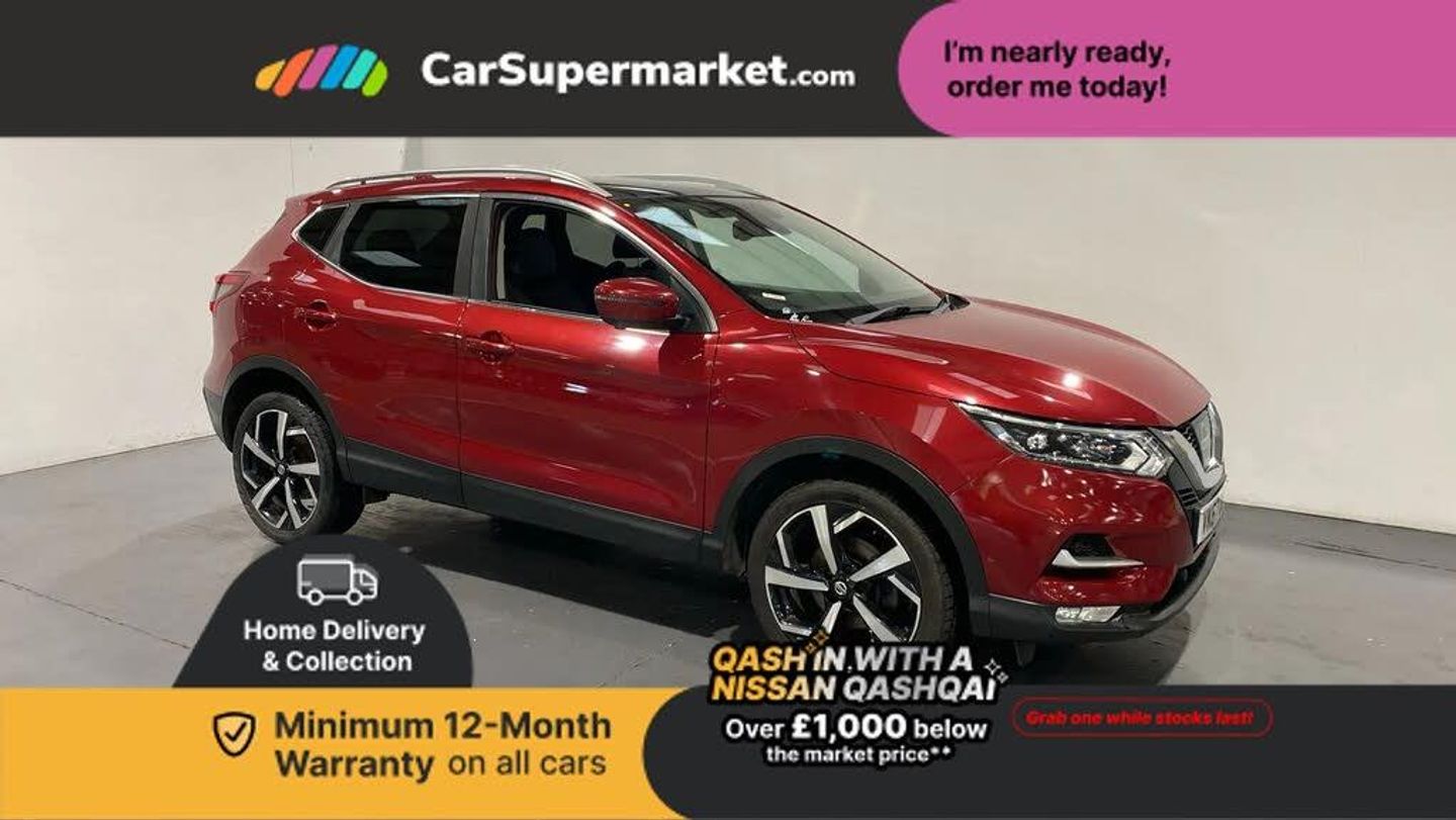 5" TFT driver information centre,Around View Monitor,Blind spot monitoring,Bluetooth phone integration system,Cruise control,Electric speed sensitive power steering,Front and rear parking sensors,Intelligent parking assist,Lane departure warning system,Nissan connect sat nav system,Outside temperature display,Push button starter,Rear view camera,Service interval indicator,Speed limiter,Traffic sign recognition,Trip computer,Diesel particulate filter,'Shark fin' mobile antenna,Bose premium 8 speaker system,DAB Digital radio,Radio/CD,Smartphone apps,Steering wheel mounted audio controls,USB/aux input socket,Automatic headlamp activation,Body colour bumpers,Body colour door handles,Body colour door mirrors,Chrome window surround,Electric folding and heated door mirrors,High beam assist,Interior mirror with auto anti dazzle,LED indicators in door mirrors,Matt silver roof rails,One touch electric front/rear windows,Privacy glass,Rain sensor windscreen wipers,Rear roof spoiler,Rear wiper,2 X front 12v power sockets,60/40 split folding rear seat,Ambient interior lighting,Centre console with armrest,Chrome interior door handles,Configurable luggage board system,Driver + front passenger lumbar support,Dual zone climate control,Electric adjust driver's seat,Front and rear door pockets with bottle holders,Front headrests,Front seat belt pre-tensioners with load limiters,Height adjustable driver's seat,Height adjustable passenger seat,Illuminated electric window switch,Isofix child seat preparation,Leather gearknob,Leather interior door handles,Leather knee rest,Leather steering wheel,Luggage compartment lighting,Parcel shelf,Part leather upholstery,Pollen filter,Rake/reach adjustable steering wheel,Rear headrests,Heat package - Qashqai,LED pack - Qashqai,ABS, brake assist and EBD,Child locks on rear doors,Curtain airbags,Driver/front passenger airbag,Electronic parking brake,ESP + traction control,Forward emergency braking,Front passenger airbag deactivation,Height adjustable front seatbelts,Hill start assist,Seatbelt warning,Side airbags,Three 3 point rear seatbelts,Tyre pressure monitoring system,Alarm,Immobiliser,Intelligent Key,Remote central locking,Graphite interior trim,Tyre puncture repair kit