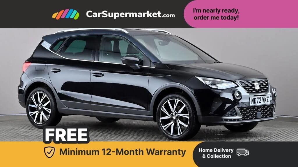'Lights On' Reminder warning buzzer,Analogue cockpit with physical dials,Digital clock,E-call,Electric speed sensitive power steering,Full Link Smartphone Integration with Mirror Link, Apple Car Play, Google Android Auto with USB Type C cable for Apple and Android compatibility,Lane keeping system,Low fuel warning light,Outside temperature display,Rear parking sensor,RPM counter,Seat connect with safety, service and remote,SEAT Drive profile - Four different models normal-sport-eco-individual, steering response, throttle response and gear shifts mode,Trip computer,Wireless phone charger,Bluetooth interface for hands free and audio streaming,DAB digital radio and AM/FM radio,Media system with 8.25" colour touchscreen with USB port (type c),Steering wheel mounted audio controls,Anti theft roof antenna,Automatic activation of hazard warning lights,Body coloured bumpers,Body coloured door handle inserts,Chrome roof rails and window surrounds,Dark tinted rear windows,Dimming rear view mirror,Electric front/rear windows,Electrically adjustable and heated door mirrors,Front fog lights with cornering function and rear fog light,FULL LED automatic headlights with dynamic headlight range control, coming and leaving home, LED daytime running lights,LED rear tail lights and licence plate lights,Protective side mouldings,Rear side wing doors,Rear spoiler,Rear window wash/wipe,Roof colour door mirrors,Third brake light,Twin exhaust pipe styling hidden exhaust pipe,Visible VIN plate,Windshield wiper with intermittent control and potentiometer,2 cupholders,3 seat bench in 2nd row,60/40 split folding rear seat,Aircare filter,Black interior roof,Double boot floor,Driver sunvisor with covered mirror + card holder,Dual zone climate control,Front comfort seats,Front courtesy light with 2x front and 2x rear reading lights,Gear shift indicator,Height adjustable front seats,Height/reach adjustable steering column,Illuminated boot,Instrument lighting with brightness control,Interior ambient lighting,Interior light in footwell, central console and door panel,ISOFIX points in outer rear seats with top tether anchorage points,Microsuede cloth upholstery,Passenger sunvisor with vanity mirror,Perforated flat bottomed leather steering wheel/gear knob/handbrake with red stitching and FR logo,Single front passenger seat,Steering wheel mounted gearshift paddles,Two front and three rear height adjustable headrests,Interior chrome pack - Arona,3 point seatbelts on all rear seats,ABS,Active front headrests,Child locks on rear doors,Driver and front passenger airbags with front passenger airbag de activation, front side and curtain airbags,Electronic stability control,Emergency Brake Assist (EBA) and front assist,Front and rear seatbelt reminder,Hill hold control,Multi-Collision braking,Tiredness recognition system,Traction control,Tyre pressure monitoring system,Alarm with back-up horn,Electronic engine immobiliser,KESSY Keyless entry and go,Locking wheel bolts,Remote central locking + deadlocks,Tow away protection,Titan black dashboard