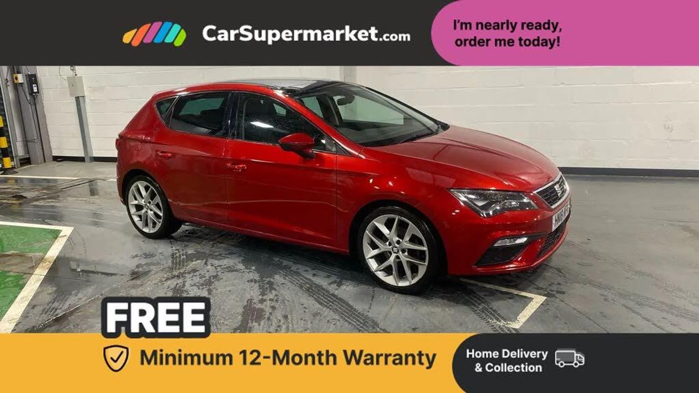 'Lights On' Reminder warning buzzer,8" touch screen,Bluetooth Handsfree Phone Connection,Low fuel warning light,Outside temperature gauge,Rear parking sensors,Remote fuel flap release,SEAT Drive profile,SEAT logo boot release,Service interval indicator,Trip computer,Voice control system,XDS electronic differential lock,2 USB ports,2 USB sockets in rear,2x SD card slot,Auxiliary input socket,Bluetooth audio streaming,DAB Digital radio,Radio/CD + MP3,Steering wheel mounted audio/phone controls,Aluminium front door sills,Black grille with chrome surround,Body colour door handles,Body coloured bumpers,Body coloured door mirrors,Dark tinted rear windows,Electric adjustable/heated/folding door mirrors,Electric front/rear windows with one touch/auto up/down,Electric headlamp adjustment,High gloss black finish B and C pillars,LED daytime running lights,LED front fog lights,LED Headlights,LED indicators in door mirrors,LED number plate light,LED tail lights,Rear wash/wipe,Reverse activated kerb-view adjustment on passenger's door mirror,Twin exhaust pipes,12v power point in centre console,3 height adjustable rear headrests,60/40 split folding rear seat,Active head restraints,Additional heating and ventilation outlet in rear of centre console,Boot net,Driver seat height adjust,Driver seat lumbar adjustment,Driver/passenger sunvisors with illuminated vanity mirrors,Dual zone climate control,Dust/pollen filter,Front adjustable head restraints,Front armrest with storage box,Front cupholders x 2,Front map reading lights,Front seat and rear pockets,Front sports seats,Height/reach adjust steering wheel,Illuminated door sills,Illuminated glovebox,Illuminated rear centre console,Instrument lighting with brightness control,Leather handbrake,Luggage tie-down hooks,Passenger seat height adjuster,Passenger seat lumbar adjust,Perforated leather steering wheel with red stitching + gear knob,Rear reading lights,Rear top tether child seat ISOFIX attachment,Storage boxes under front seats,3 point seatbelts on all rear seats,ABS + traction control,Active pedestrian safety system,Child proof door locks,Collision mitigation braking system,Curtain airbags,Driver/Front Passenger airbags,Drivers knee airbag,Electronic parking brake with auto hold,ESP+EBA,Front assist including city emergency braking,Front seatbelt pretensioners,Front Seatbelt warning,Front side airbags,Hill hold control,Manual passenger airbag deactivation function,Tyre pressure monitoring system,Engine immobiliser,Locking wheel bolts,Remote central locking + deadlocks,Volumetric alarm with back up horn,Chrome interior trim