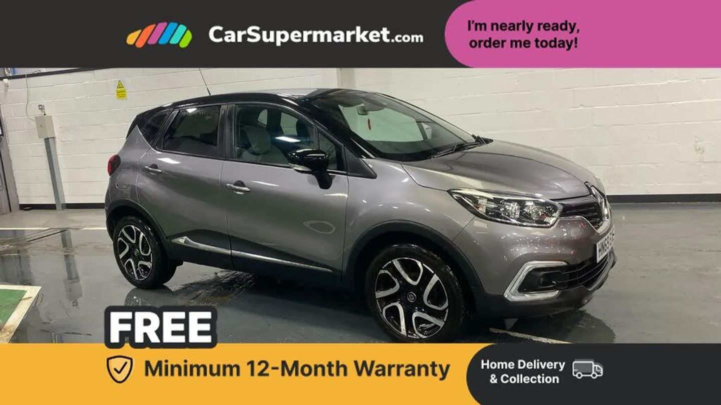 Cruise control + speed limiter,Eco mode,Rear parking sensor,Renault MediaNav with 7" touch screen and Navteq Nav 'n' Go Satellite Navigation,Smartphone cradle,Trip computer,Variable PAS,4x20W radio with bluetooth hands free and USB,Auxiliary input socket,DAB Digital radio,Fingertip controls for audio system,Body colour door handles,Body coloured bumpers,Electric adjustable heated door mirrors,Electric front windows + one touch + anti-pinch,Electric rear windows,Extra tinted glass in rear windows and tailgate,Front skid plate,LED daytime running lights,LED front fog lights,Rain sensitive wipers + automatic lighting,Rear skid plate,Rear wiper,Variable intermittent front wash/wipe,12V Accessory socket,3 rear headrests,60/40 split folding rear seat bench,Automatic climate control with one touch demist function,Centre console storage tray,Compartment in glovebox,Dark harmony dashboard and door panels,Fixed cloth upholstery,Front cupholder,Front seat backrest storage nets,Heating system with pollen filter,Height adjustable driver's seat,Height adjustable front headrests,Height/reach adjust steering wheel,ISOFIX on front passenger and rear outer seats,Leather steering wheel and gear knob,Removable storage between driver and passenger,Reversible boot floor,Storage area on top of dashboard,Storage compartments in doors,Storage space near handbrake,Variable boot floor,Exterior touch pack Chrome - Captur,Interior touch pack Chrome - Captur,3 point seatbelts on all rear seats,ABS+EBA,Driver/Front Passenger airbags,ESC - Electronic Stability Control + traction control,Front passenger airbag deactivation,Front side airbags(head+thorax),Hill start assist,Rear door child safety locks,Seatbelt warning,Tyre pressure monitor,Automatic door locking,Deadlocking system,Hands free access with keycard and start button,RAID (Renault Anti-Intruder Device) with automatic door locking,Remote central locking,Thatcham Cat 2 engine immobiliser,17" Explore alloy wheels with black inserts,Emergency Spare Wheel - Space Saver,Oyster Grey with Metallic Diamond Black Roof