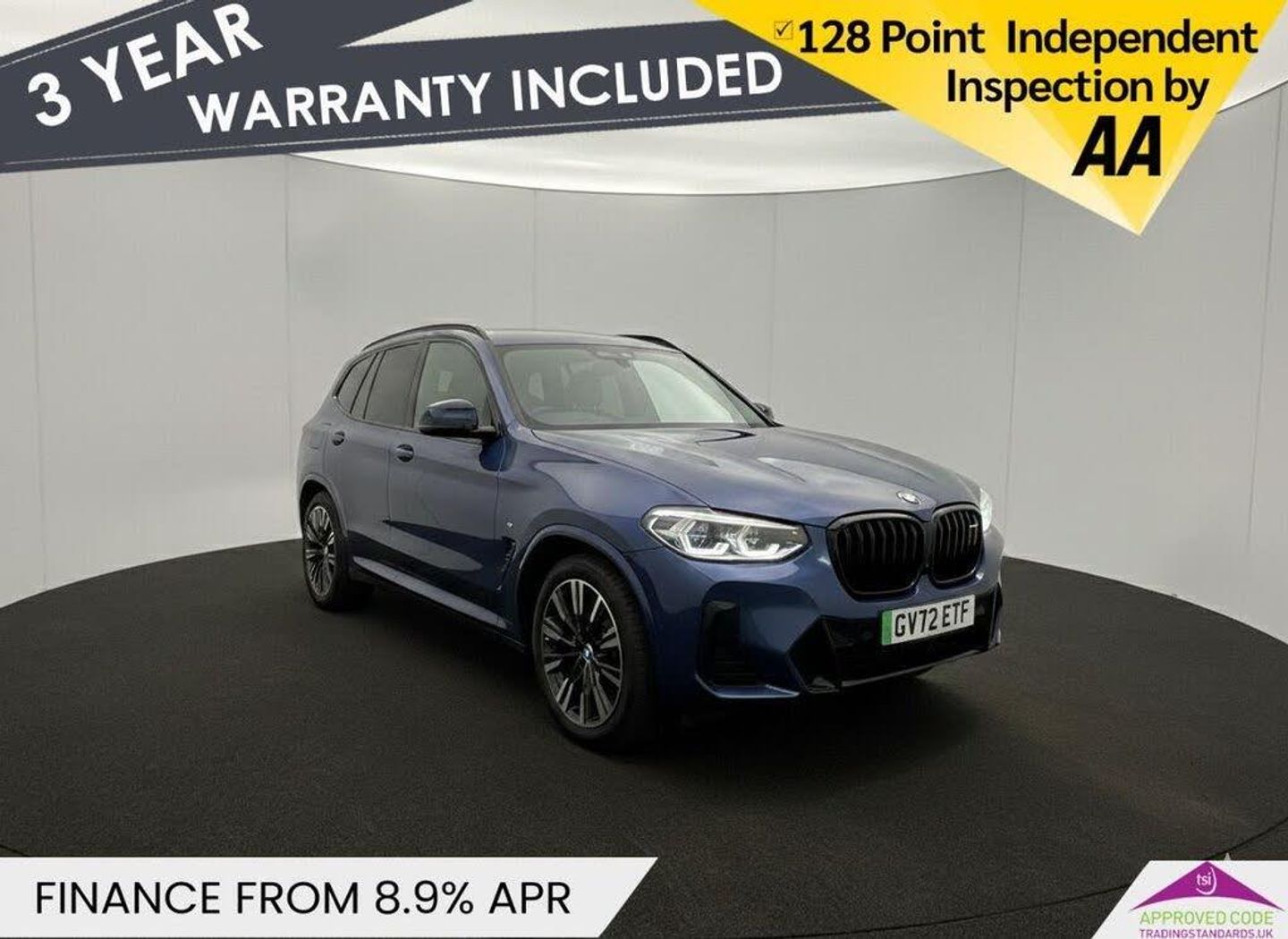 20in Alloy Wheels - M Aerodynamic - Bi-Colour, ABS - Anti Lock Braking System, Acoustic Glazing, Active Guard Plus, Active Protection, Adaptive LED Headlights, Adaptive Suspension, Air Breather with BMW M logo, Air Conditioning - Automatic, Airbags - Driver and Front Passenger, Airbags - Front Side for Driver and Passenger, Airbags - Head - Front and Rear, Alarm System, Ambient Lighting, Armrests, Attentiveness Assistant, Automatic Operation of Tailgate, Automatic Start-Stop Button, BMW Connected Package Professional, BMW ConnectedDrive Online Services, BMW Gesture Control, BMW Iconic Sounds - Electric, BMW Individual Lights - Shadowline, BMW Legal Emergency Call, BMW Live Cockpit Professional, BMW TeleServices, BMW iDrive, Backrest Width Adjustment for Driver, Blue Ring Around BMW Logos, Brake Pad Wear Indicator, Bumper System Front and Rear - Replaceable Deformation Elements for Impacts Up to 15kmh, CBC - Cornering Brake Control, Centre Lock Switch, Charging Cable - Mode 3 - 5m, Closing System with Central Locking, Comfort Access, Condition Based Service, Crash Sensor, Cup Holders - Front x2, DAB Digital Radio, DSC - Dynamic Stability Control Plus, DTC - Dynamic Traction Control, Door Sill Strips, Drive Recorder, Driving Assistant Professional, Driving Experience Switch, Dynamic Brake Lights, Electric Memory Seats, Electric Windows - Front, Electro Mechanical Parking Brake, Electronic Vehicle Immobiliser, Enhanced Bluetooth with Wireless Charging, Extended Storage, Exterior Mirrors - Electrically Folding with Anti Dazzle, Exterior Trim - Extended High Gloss Shadowline, Exterior Trim - High-Gloss Shadowline, Floor Mats - Velour, Follow Me Home Headlight Function, Front Bumper - M Sport with iX3 Specific Design with Blue Contents, Front and Rear Parking Sensors, Galvanic Embellisher for Controls, Glove Compartment - Lockable, Head-Up Display, Headlights - Beam Throw Control, Headlining - M Anthracite, Heated Seats for Driver and Front Passenger, Heated Steering Wheel, High-Beam Assistant, Instrument Panel in Sensatec, Interior Rear-View Mirror with Automatic Anti-Dazzle Function, Interior Trim - Aluminium Rhombicle with Pearl Chrome, Lashing Eyes in Luggage Compartment, Loudspeaker System - Harman Kardon, Luggage Compartment Lights, Luggage Net, Lumbar Support - Drivers, M Aerodynamic Exterior, M Badging on Front Side - Left and Right, M Seat Belts, M Sport Leather Steering Wheel, Multiple-Control-Arm Rear Axle, Non Smoker Package, Panoramic Glass Sunroof, Parking Assistant, Parking Assistant Plus, Power Sockets, Power Steering - Electric, Preparation for Adaptive M Suspension, Rain Sensor with Automatic Headlight Activation, Rear Centre Armrest including Two Cupholders, Rear Diffuser in Blue, Reversing Assist Camera, Reversing Light, Roof Rails - Shadow Line High Gloss - Black, Runflat Indicator, Safety Battery - Terminal Clamp, Seat Backrest Adjustment for Rear Seats, Seats - Front Sports, Servotronic Steering, Side Impact Protection, Split Folding Rear Seat, Steering Column Adjustment, Storage Options, Sun Protection Glass, Sun Visors with Vanity Mirrors and Ticket Holder, TPMS - Tyre Pressure Monitoring System, Third Brake Light Using LED Technology, Tyre Repair Kit, Warning Triangle, Washer Jets - Heated, Welcome Lighting, WiFi Hotspot, Widescreen Display, eDrive Exterior Sound, Phytonic Blue, Vernasca Leather - Oyster with Grey Contrast Stitching
