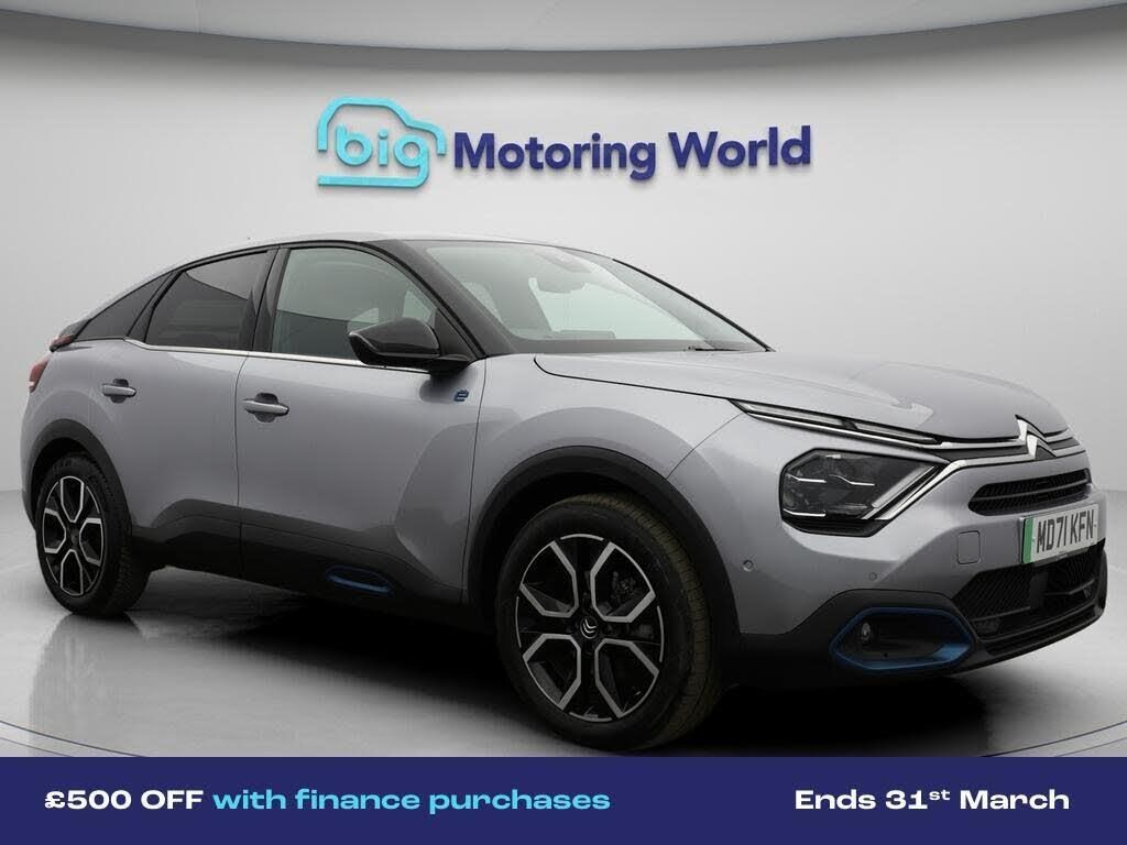 £500 towards your finance depo-Our Citroen e-C4 is finished in Grey. Specification includes a range of fantastic features including £500 towards your finance deposit, Head up Display, 18'' alloy wheels, Part Leather Seats, Apple CarPlay, Android Auto, Satellite Navigation, Privacy Glass, Rear View Camera, Heated Steering Wheel Specification information is supplied by CAPHPI and may vary to the actual car. This data does not form any part of a buying contact. Please check specification prior to purchase in-store. The MOT is valid until February 2027, visit bigmotoringworld.co.uk for more photos, a 360 tour, service history and a free HPI report.Were BIG on peace of mind and this Grey Citroen e-C4 has completed our comprehensive 200 point inspection and passed all checks. Its ready for you to drive away with immediate collection in-store. We include a 90-day warranty as standard plus an option to extend for up to 3 years.Reserve this car exclusively for you, safely and securely at bigmotoringworld.co.uk, with a fully refundable £99 deposit. Test drive before you buy, with no commitment, no hassle and a completely haggle free experience. Still searching and want to see thousands more cars? We are BIG on choice with over 8000 cars to choose from.Visit our award winning web site bigmotoringworld.co.uk.Were Big Motoring World and were BIG on what matters to you.