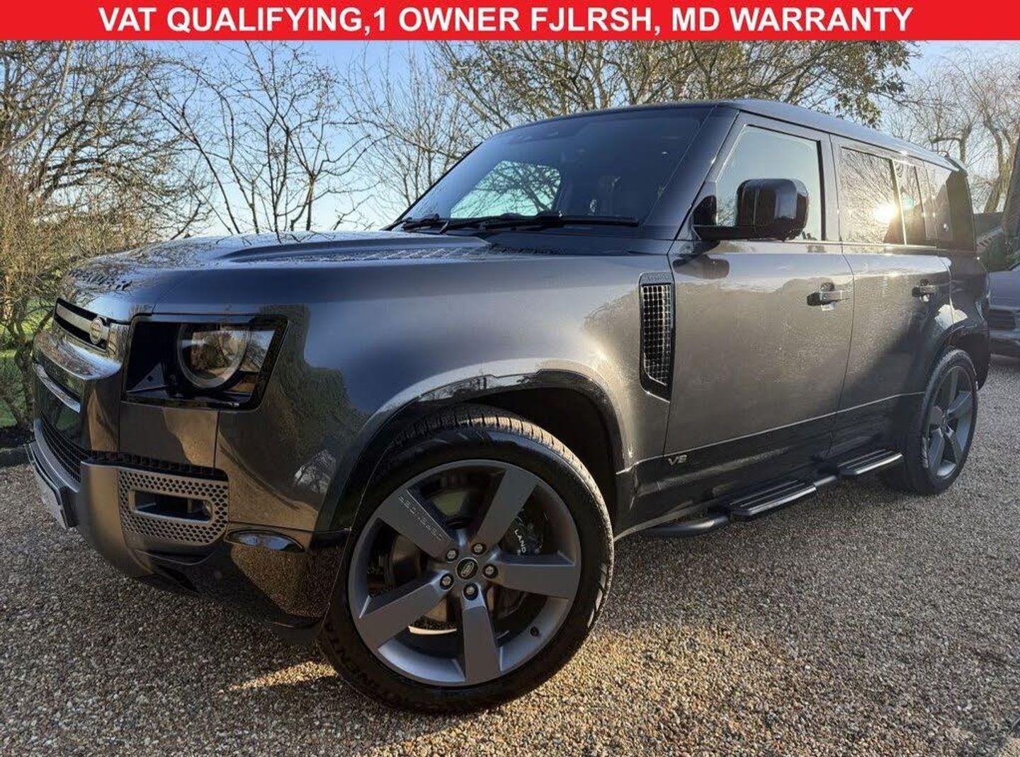 Whytehall are delighted to offer this stunning 1 owner high specification full dealer history VAT QUALIFYING DEFENDER 110 P525 V8 CARPATHIAN EDTION SUV 5DR PETROL AUTO 4WD EURO 6 (SS) (525) Factory extras include Carpathian grey metallic, gloss black contrast roof, roof spoiler and body cladding, panoramic roof with sun protection, black leather with extra leather package, 18 way hot and cold climate seats with lumbar, 40-20-40 heated rear seats with arm rest, heated steering wheel, electric steering column, ambient interior lighting, Air suspension, advance tow assist, electric deployable tow-bar, heads up display. Matrix LED signature headlights, front fog lamps, bright metal pedals, solar attenuating windscreen, privacy glass, air quality sensing, 11.4 media navigation centre with pivi pro apple car play, 360 3D surround view etc wireless charging, heated washer jets, adaptive cruise with start stop, electronic active differential with torque vectoring, Side steps, 22' alloy wheels, painted rear wheel cover, gloss tracker, carpet mats, domestic plug sockets. Stunning condition. Price includes VAT, great value if VAT registered or exporting. Part exchange welcome, same day low rate finance, global delivery available. Please call for further information. Appointment only.
