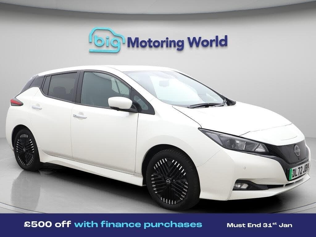 £500 towards your finance depo-Our Nissan Leaf is finished in White. Specification includes a range of fantastic features including £500 towards your finance deposit, Part Leather Seats, Satellite Navigation, Privacy Glass, Rear View Camera, Heated Steering Wheel, Bluetooth, Parking Sensors, 2 Zone Climate, Cruise Control Specification information is supplied by CAPHPI and may vary to the actual car. This data does not form any part of a buying contact. Please check specification prior to purchase in-store. The MOT is valid until October 2026, visit bigmotoringworld.co.uk for more photos, a 360 tour, service history and a free HPI report.Were BIG on peace of mind and this White Nissan Leaf has completed our comprehensive 200 point inspection and passed all checks. Its ready for you to drive away with immediate collection in-store. We include a 90-day warranty as standard plus an option to extend for up to 3 years.Reserve this car exclusively for you, safely and securely at bigmotoringworld.co.uk, with a fully refundable £99 deposit. Test drive before you buy, with no commitment, no hassle and a completely haggle free experience. Still searching and want to see thousands more cars? We are BIG on choice with over 8000 cars to choose from.Visit our award winning web site bigmotoringworld.co.uk.Were Big Motoring World and were BIG on what matters to you.