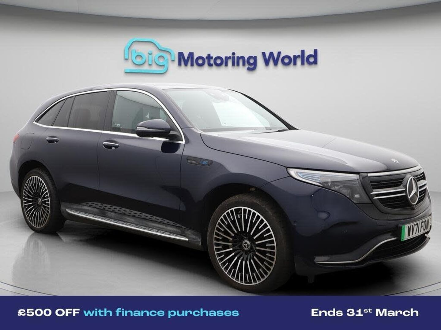 £500 towards your finance depo-Our Mercedes-Benz EQC comes with optional extras worth £1,435. Specification includes a range of fantastic features including £500 towards your finance deposit, Comfort Pack, Premium Plus, All Wheel Drive, Head up Display, 21'' Alloy Wheels, Leather Seats, Air Suspension, Apple CarPlay, AMG body styling Specification information is supplied by CAPHPI and may vary to the actual car. This data does not form any part of a buying contact. Please check specification prior to purchase in-store. The MOT is valid until September 2026, visit bigmotoringworld.co.uk for more photos, a 360 tour, service history and a free HPI report.Were BIG on peace of mind and this Blue Mercedes-Benz EQC has completed our comprehensive 200 point inspection and passed all checks. Its ready for you to drive away with immediate collection in-store. We include a 90-day warranty as standard plus an option to extend for up to 3 years.Reserve this car exclusively for you, safely and securely at bigmotoringworld.co.uk, with a fully refundable £99 deposit. Test drive before you buy, with no commitment, no hassle and a completely haggle free experience. Still searching and want to see thousands more cars? We are BIG on choice with over 8000 cars to choose from.Visit our award winning web site bigmotoringworld.co.uk.Were Big Motoring World and were BIG on what matters to you.