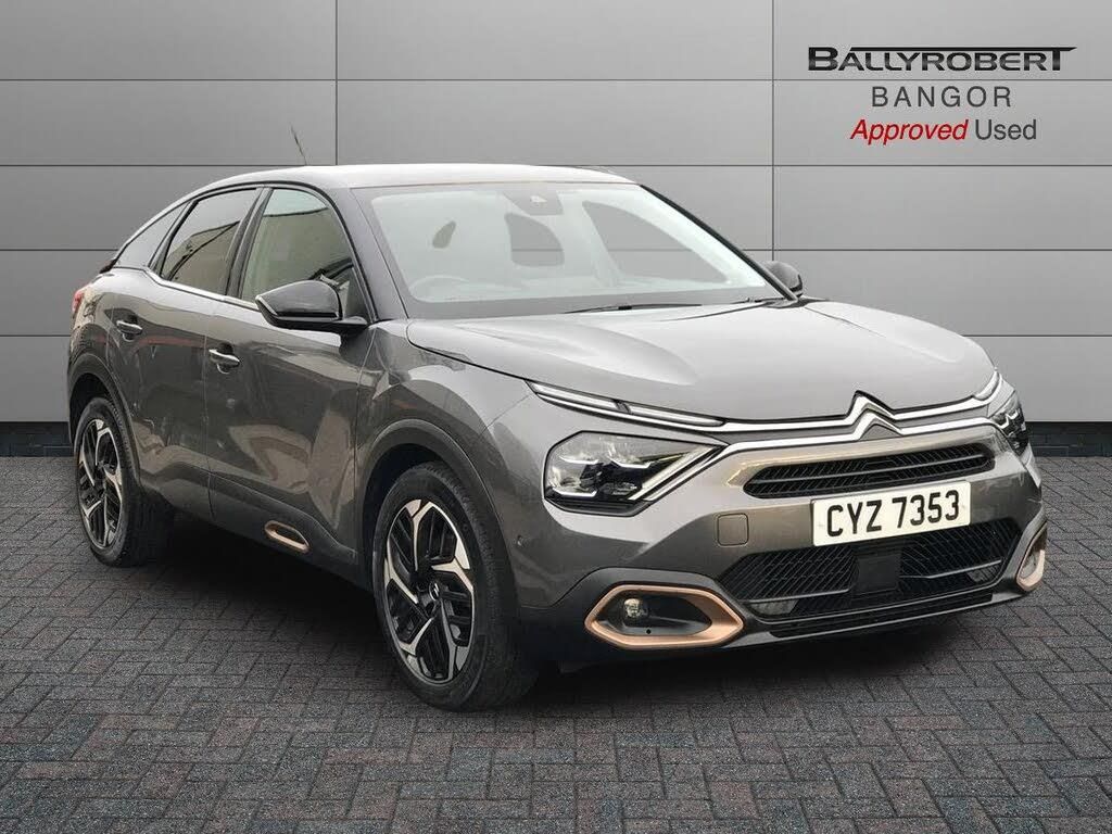 10" high resolution touchscreen user interface, controlling media, connectivity and vehicle settings, 5.5 inch backlit full TFT driver's instrument cluster with LED ambient lighting, Active blind spot detection, Apple car play and Android auto, Citroen connect box emergency and assistance system, Citroen connect nav with real time traffic and speedcam, Cruise control + speed limiter, Driver's head-up display, Electronic Power Steering (EPS), In-crash braking, Tailgate, Voice commands, Advanced comfort suspension - double hydraulic stops on front suspension and single on rear suspension, Auxiliary input socket, Bluetooth telephone and audio streaming, Citroen Hifi system with 1 speaker in dashboard centre, 4 woofers in doors, 2 tweeters in pillars and 1 subwoofer, DAB Digital radio, 3rd brake light, Body colour bumpers, Body colour door handles, Body colour painted external rear view mirrors, Body coloured door mirrors, Boot spoiler, C-Series badging on front wing, Dark tinted rear windows and side windows with chrome detail, Electrically heated, folding and adjustable external rear view mirrors with courtesy lighting, Electrochrome interior rear-view mirror with automatic day-night switching, Front and rear electric windows, Gloss black rear skirt, Intelligent beam headlights, LED daytime running lights in V signature, LED front fog lamps with static cornering function, LED front headlamps, Rain sensing automatic front windscreen wipers, Rear side wing doors, Rear wiper, Roof aerial, Welcome and goodbye lighting, 12V power outlet, 1x USB Type-C socket charging & data connection and 1x USB Type-A socket in 1st row and 1x USB Type-A socket charging in 2nd row, 3 rear headrests, 3 seat bench in 2nd row, Boot light, Chevrons cloth and leather effect textile seat upholstery, Dashboard tray in front cabin, Deluxe leather steering wheel with two command blocks, Driver and passenger sunvisors with illuminated vanity mirrors, Dual zone automatic air conditioning, Electrically heated front seats, Front and rear LED interior lighting, Front head restraints, Heated steering wheel, Height adjustable driver's seat with adjustable lumbar support, Height adjustable front passenger seat, Height and reach adjustable steering wheel, Map pockets in rear of front seats, Raised centre console with armrest and two cup holders, Single front passenger seat, Split folding rear seats, Two position boot floor, High level acoustic insulation pack - C4/C4 X/e-C4 X, Safety pack plus - C4/C-Series Edition/Max, 3x3 point rear seatbelts, ABS, Driver and front passenger airbags, Electric parking brake, ESP, Front seatbelt pretensioners, Hill start assist, Manual child lock in second row, Manual deactivation of front passenger airbag, Post collision safety brake, Row 1 and 2 curtain airbags, Row 1 side thorax airbags, Seatbelt unfastened on the move warning, Tyre underinflation detection, Anti-theft alarm (volumetric protection), Immobiliser, Keyless entry and start, Remote locking with deadlocks, 18" Bi-tone diamond-cut aeroblade alloy wheels with anti-theft locking wheel nuts, Puncture repair kit with compressor
